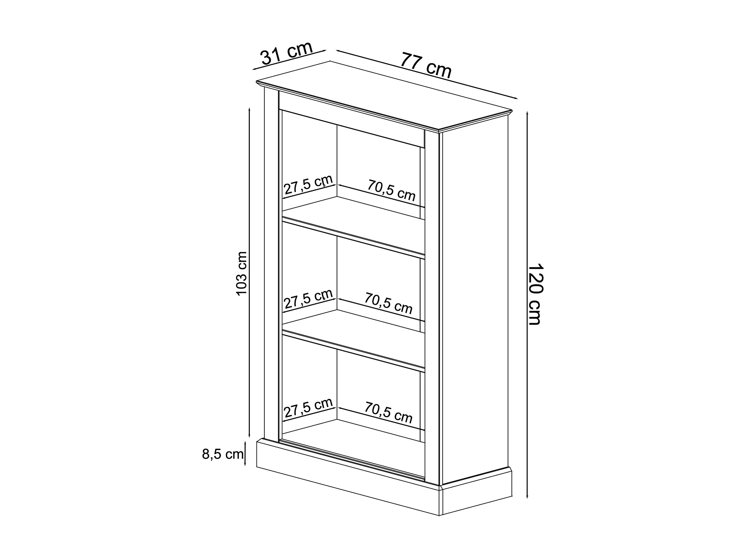 Mille | Bibliothèque avec 2 étagères en sapin blanc