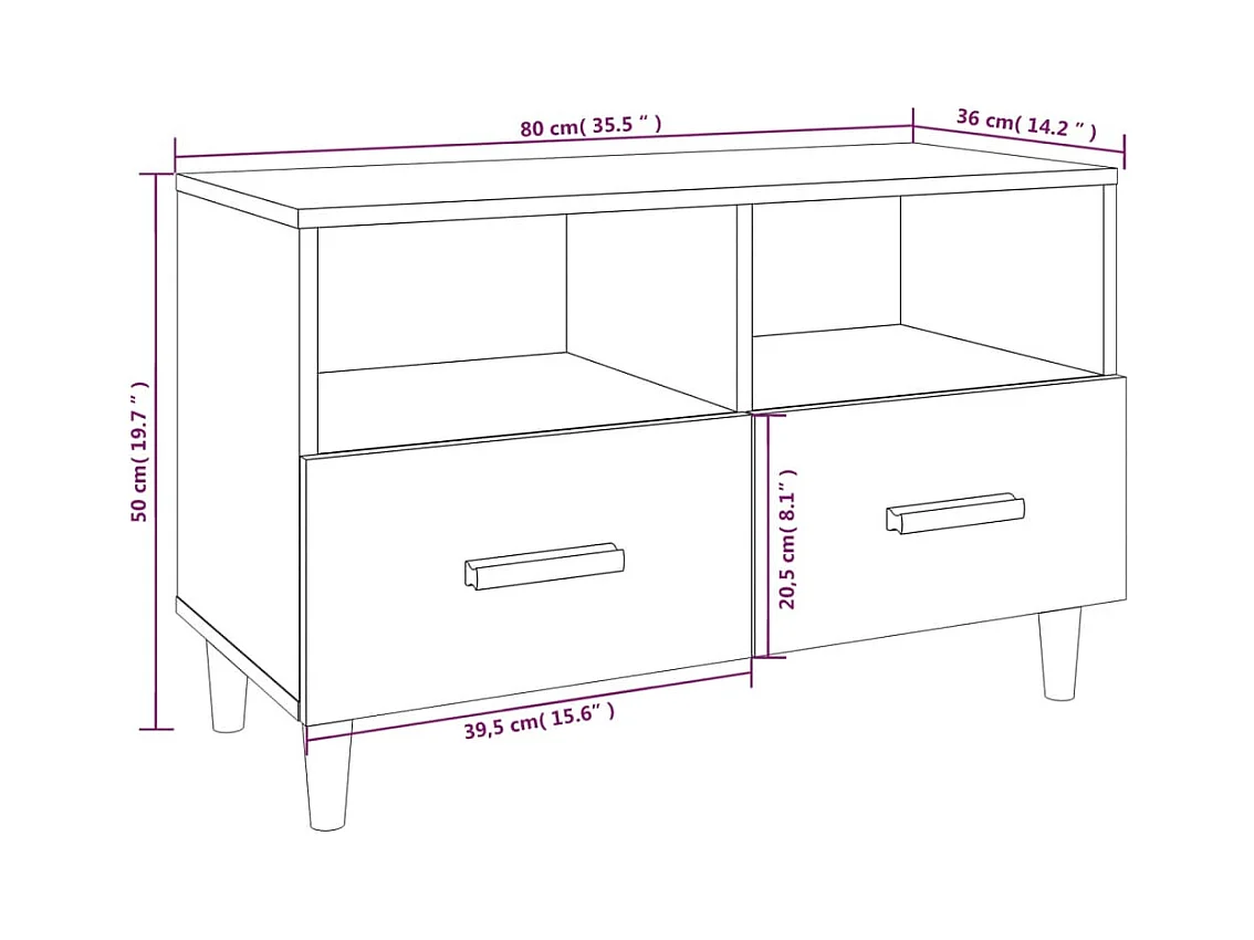 Oona Meuble TV Noir 80x36x50 cm Bois d'ingénierie