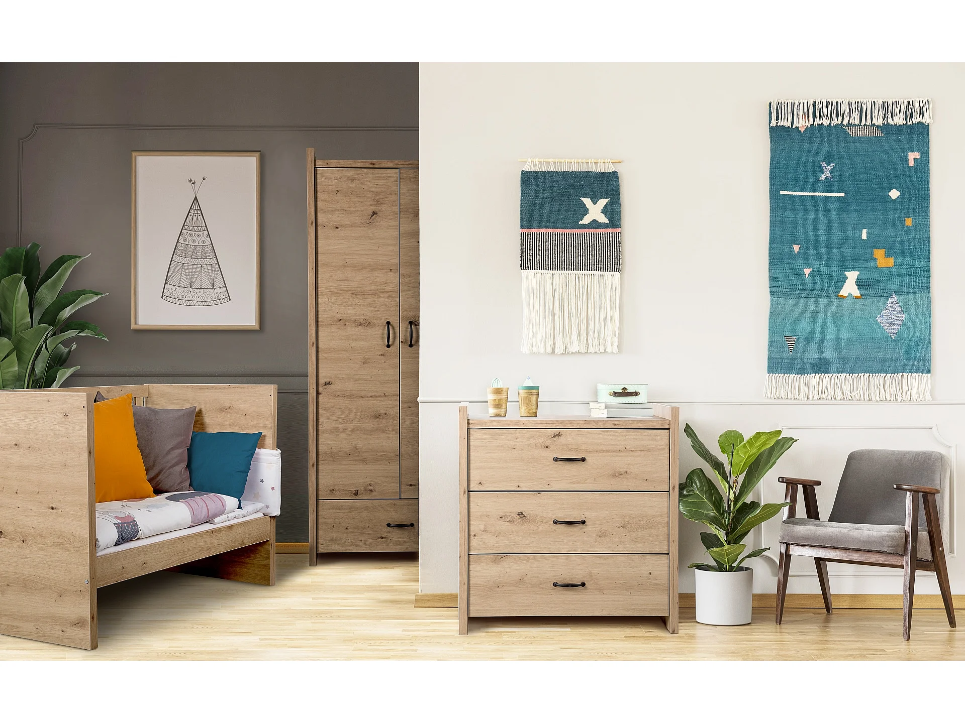 MINEA | Armoire ELISA L. 84 cm Imitation Chêne | 2 portes + 1 tiroir