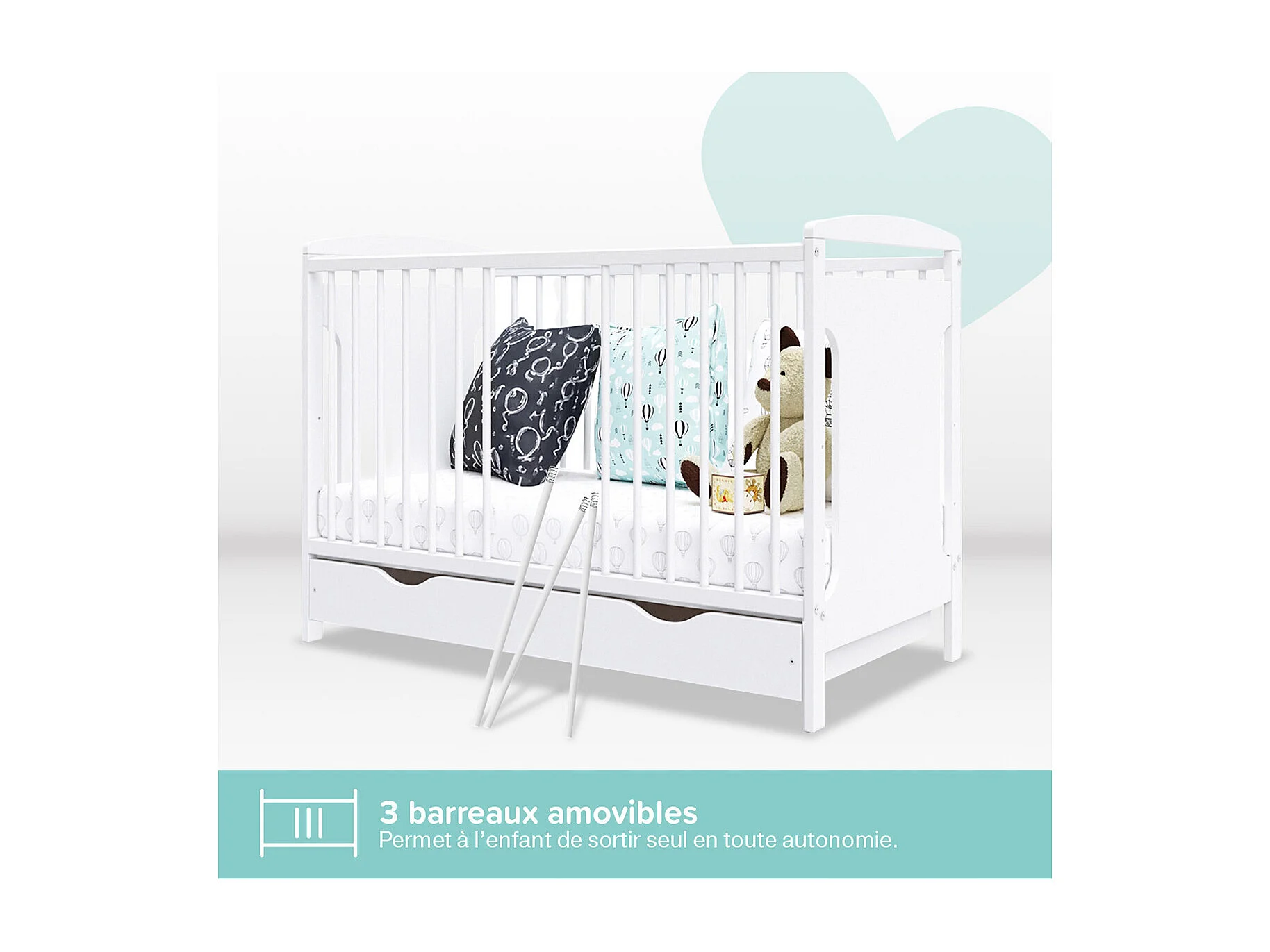 MINEA | Lit bébé évolutif avec tiroir MARGOT 60x120 cm (matelas non inclus)