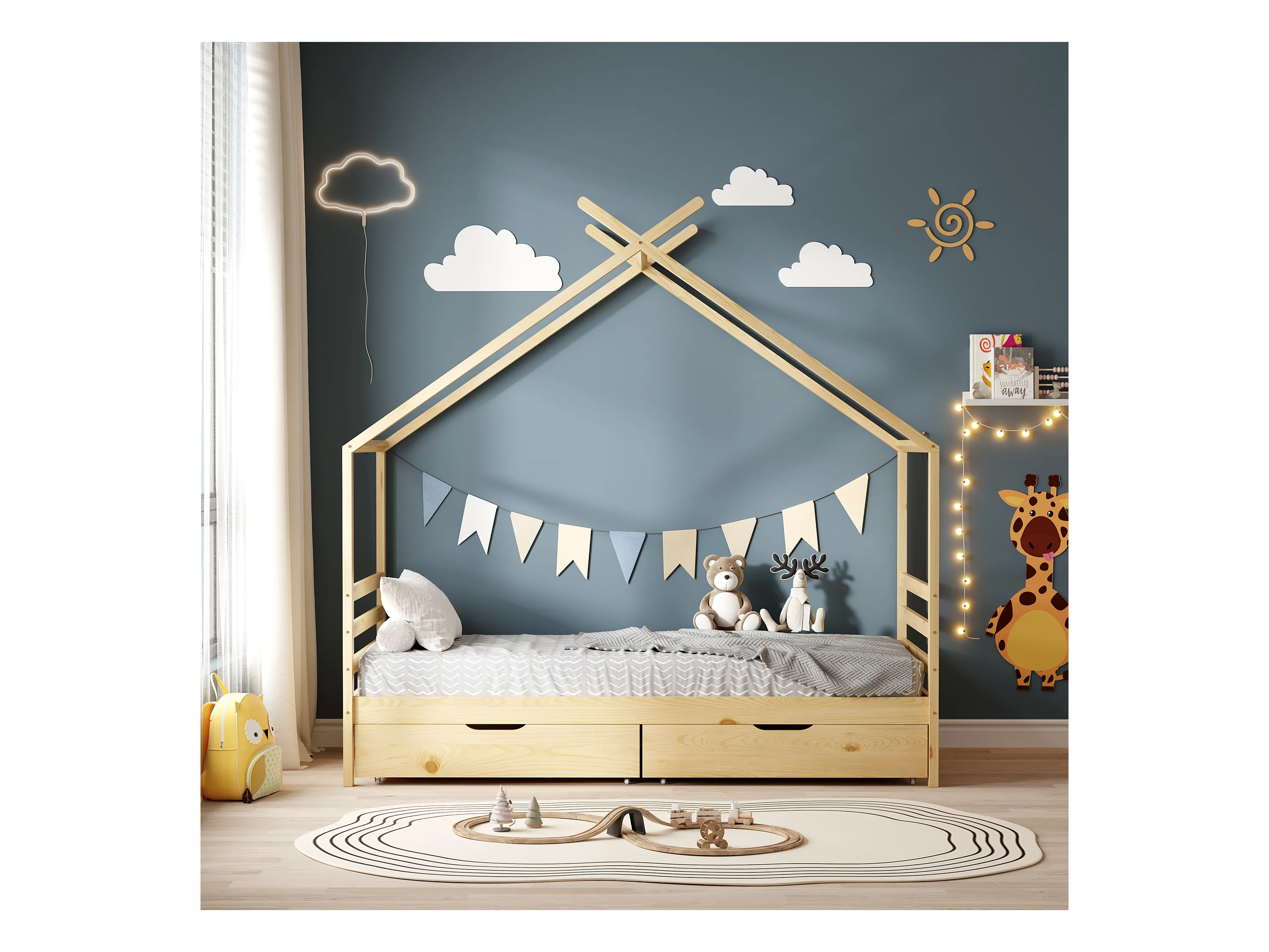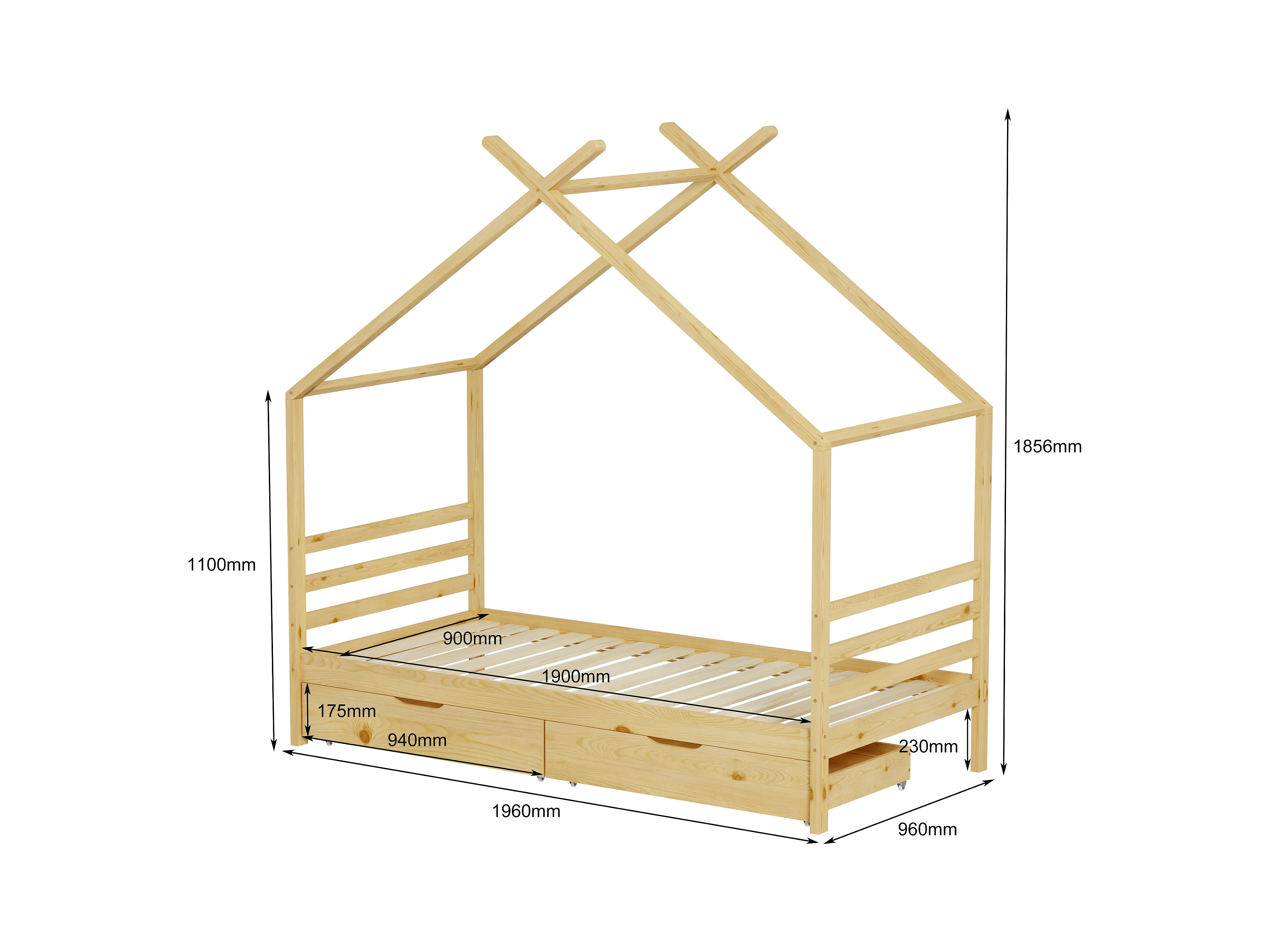 MINEA | Lit cabane avec tiroir BAMBINO 90x190 cm (matelas non inclus)