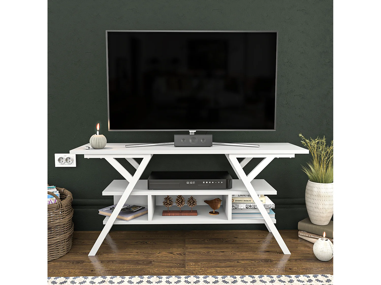 Minerva Meuble TV 120 cm Étagères Ouvertes et Cadre en métal (Blanc)