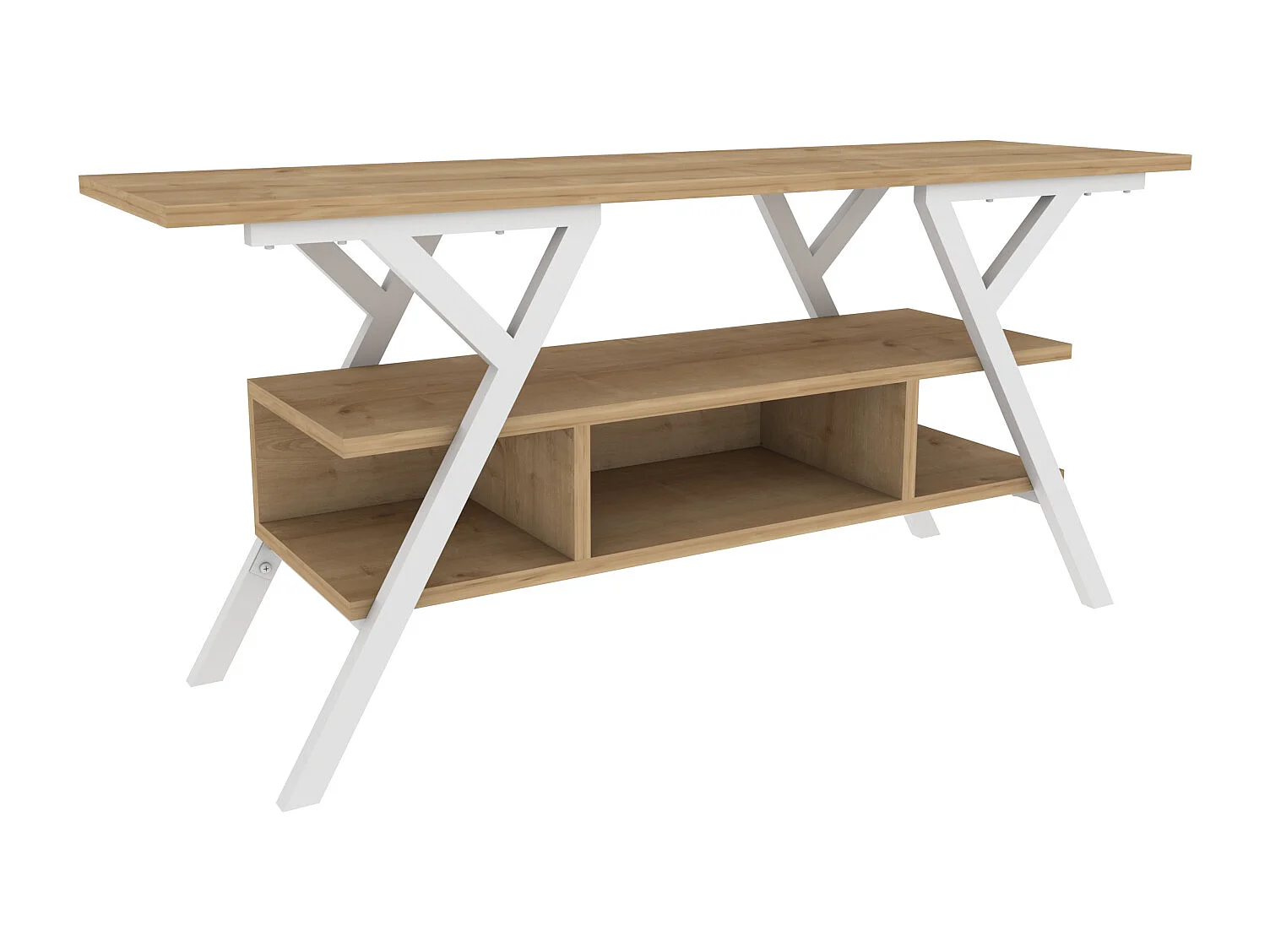 Minerva Meuble TV 120 cm Étagères Ouvertes et Cadre en métal (Blanc et Chêne)