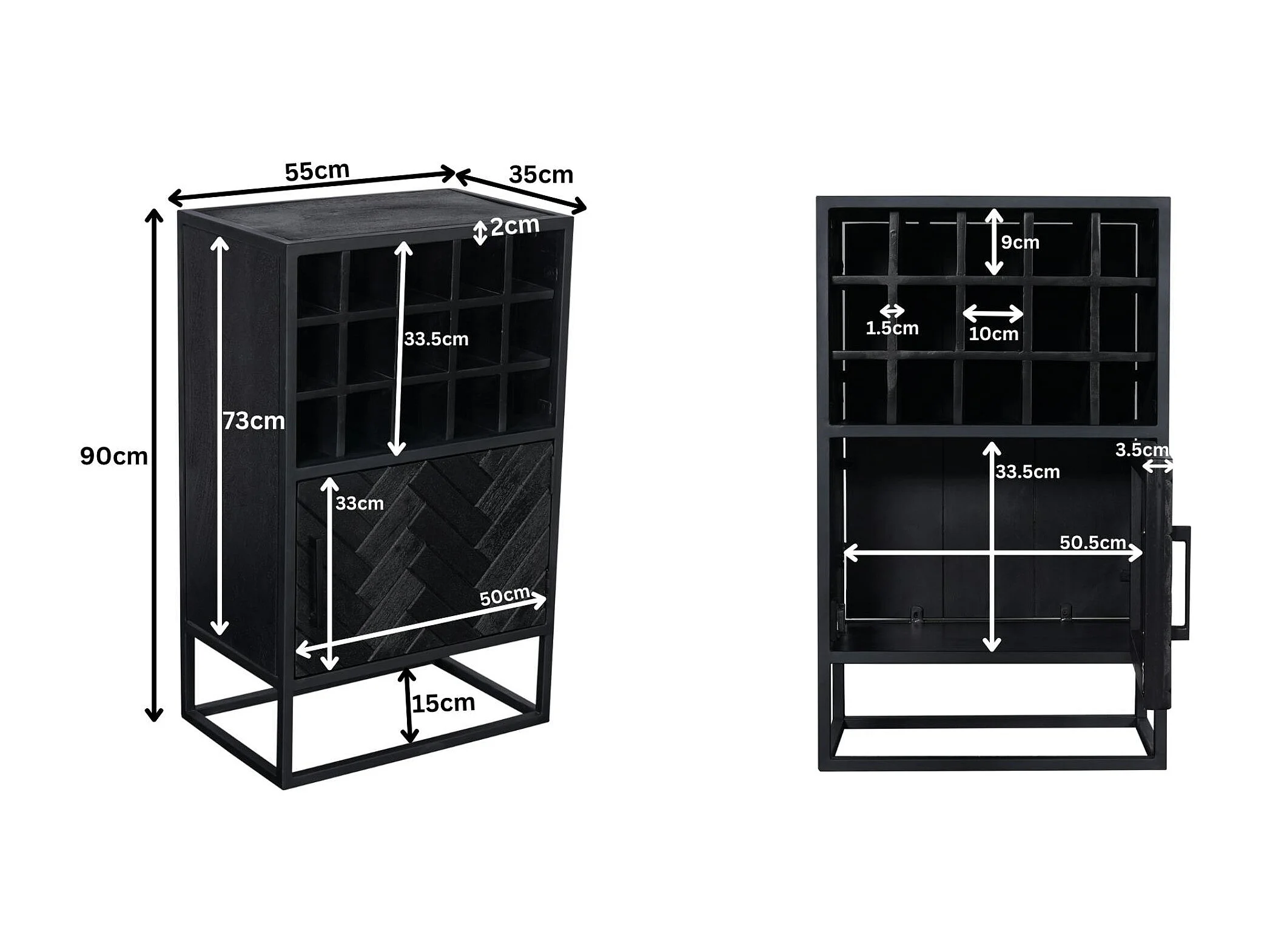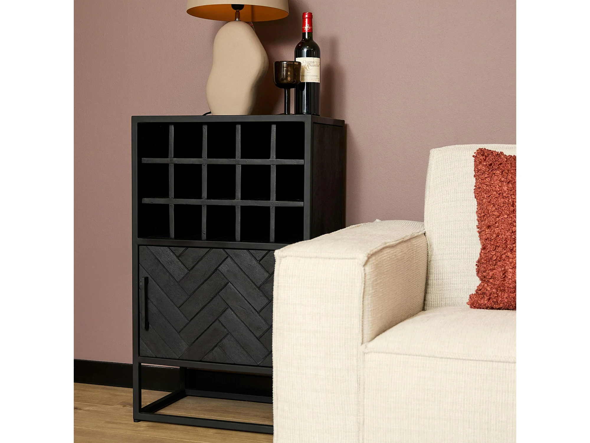 Minibar salon en bois noir pour 15 bouteilles ALVERA