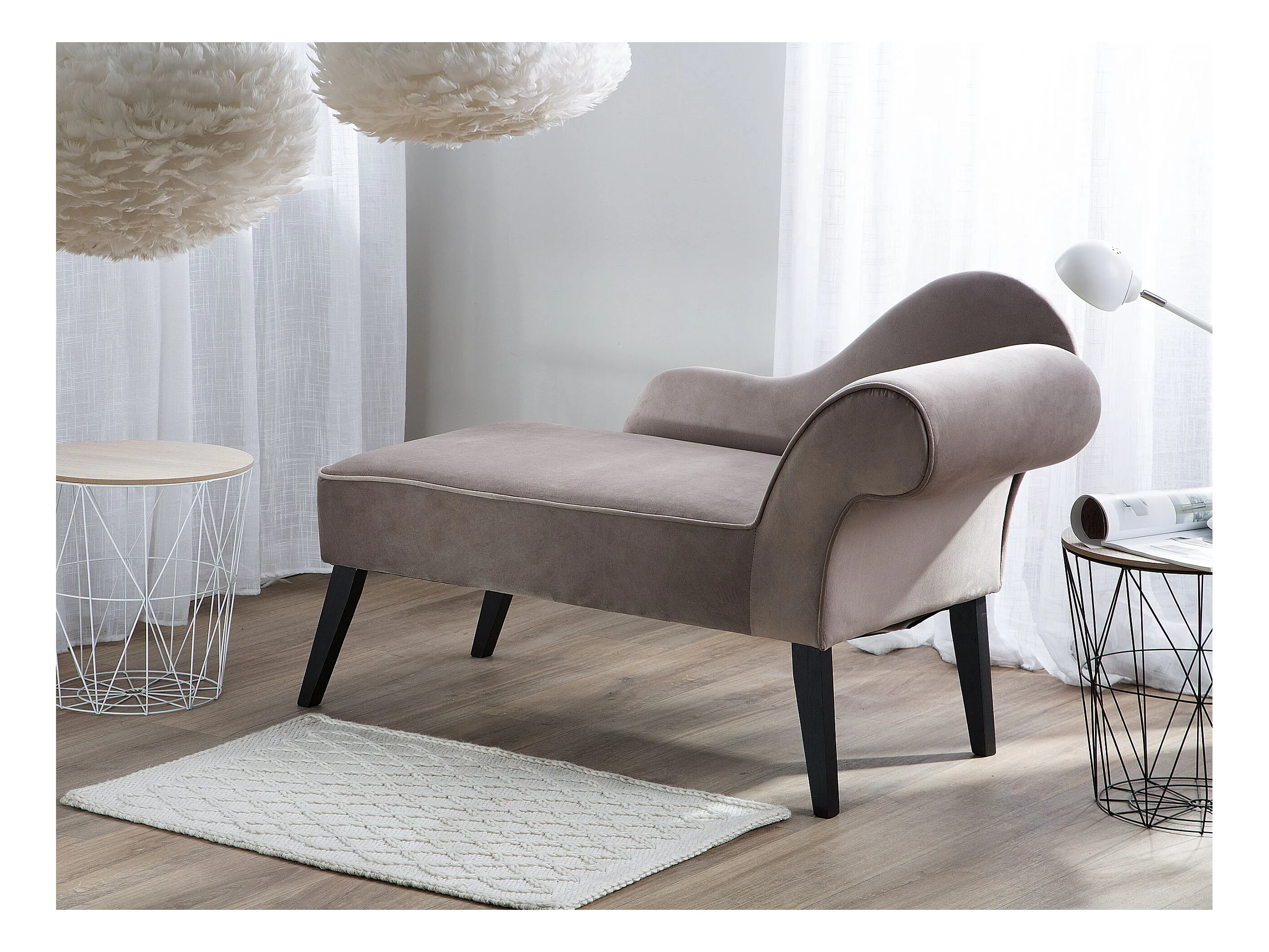 Mini chaise longue en velours taupe côté droit BIARRITZ