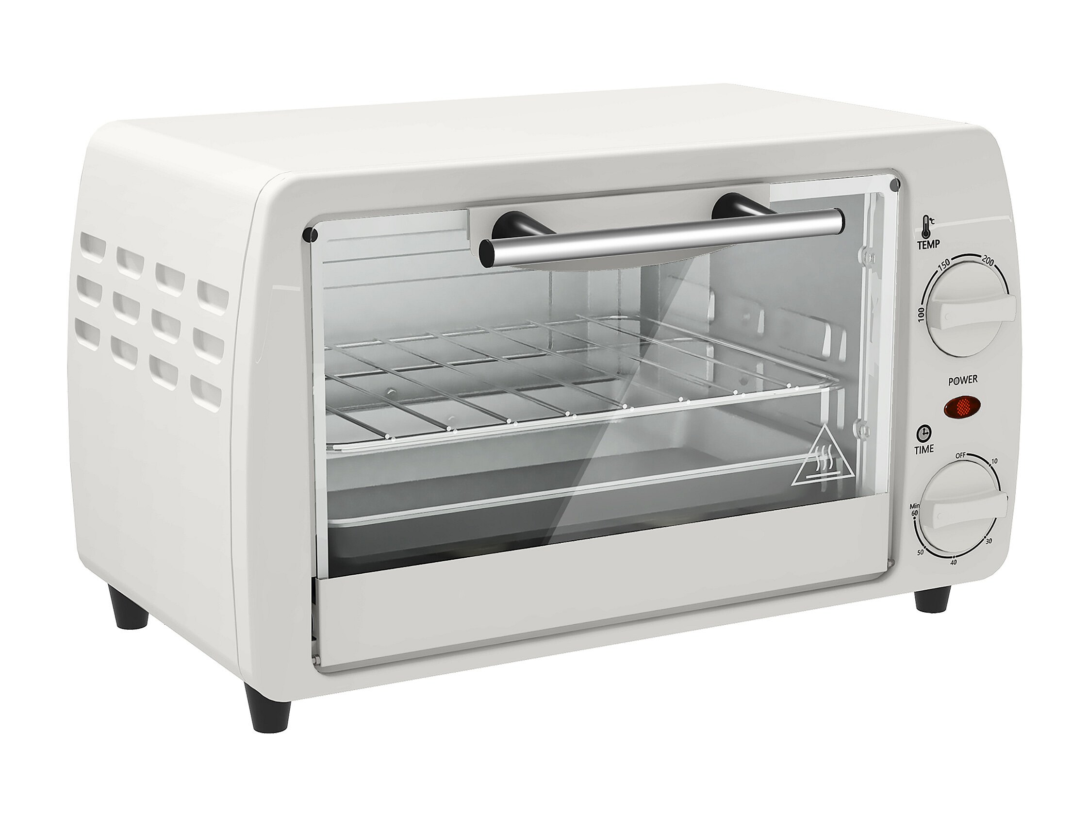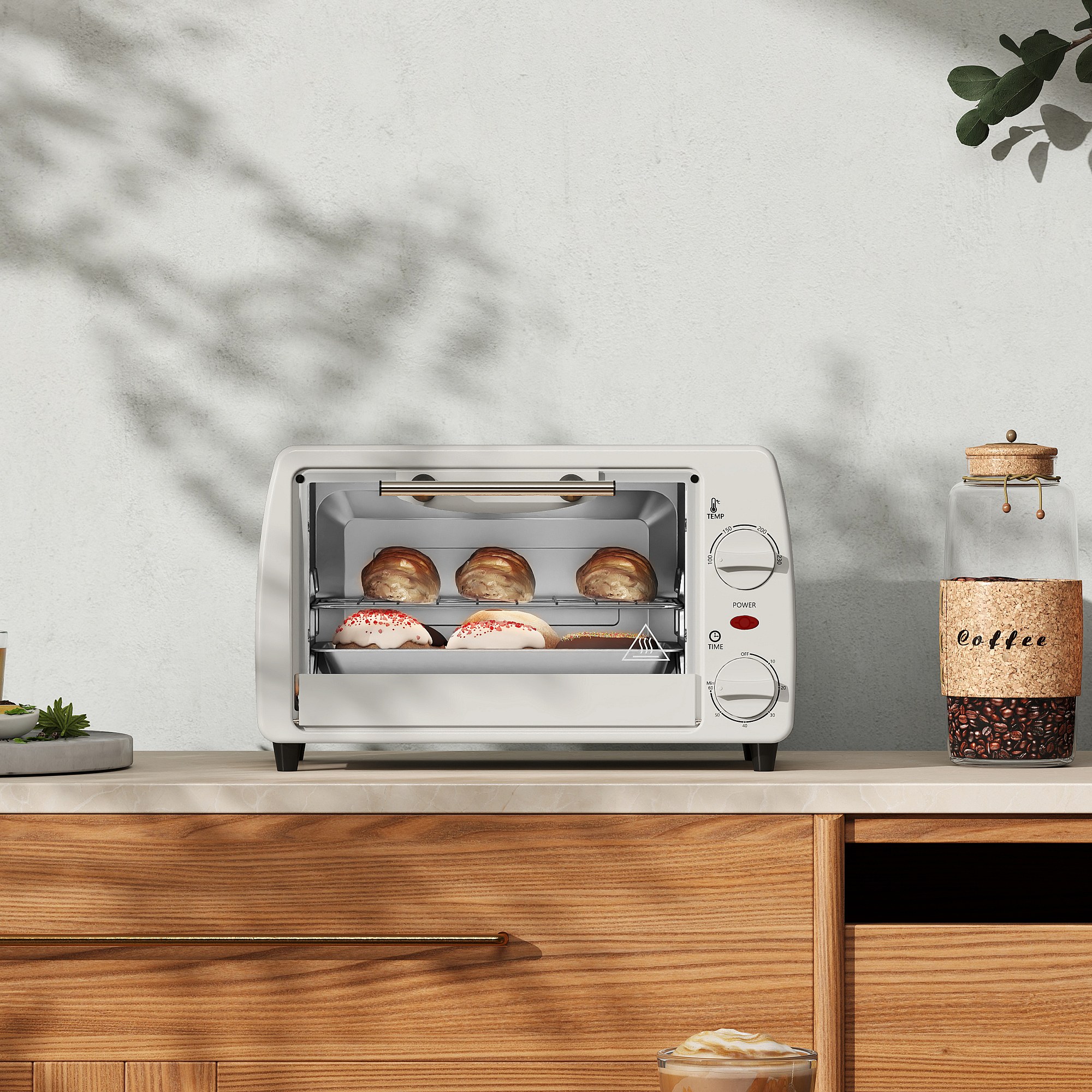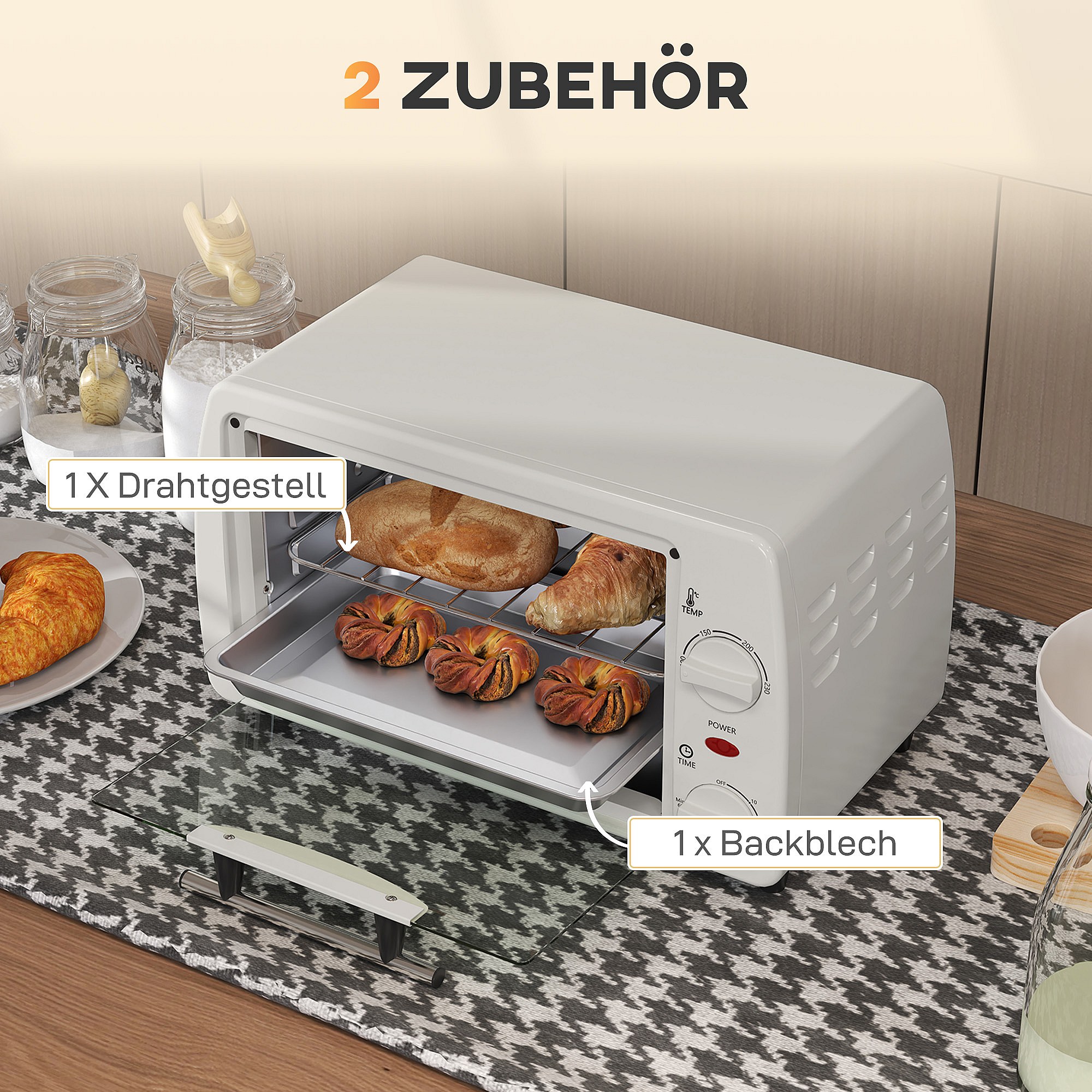 Mini four 10L, 750W, température réglable de 100°C à 230°C, minuteur 60 min, plaque de cuisson et grille, métal, crème (36.5x26x22cm)