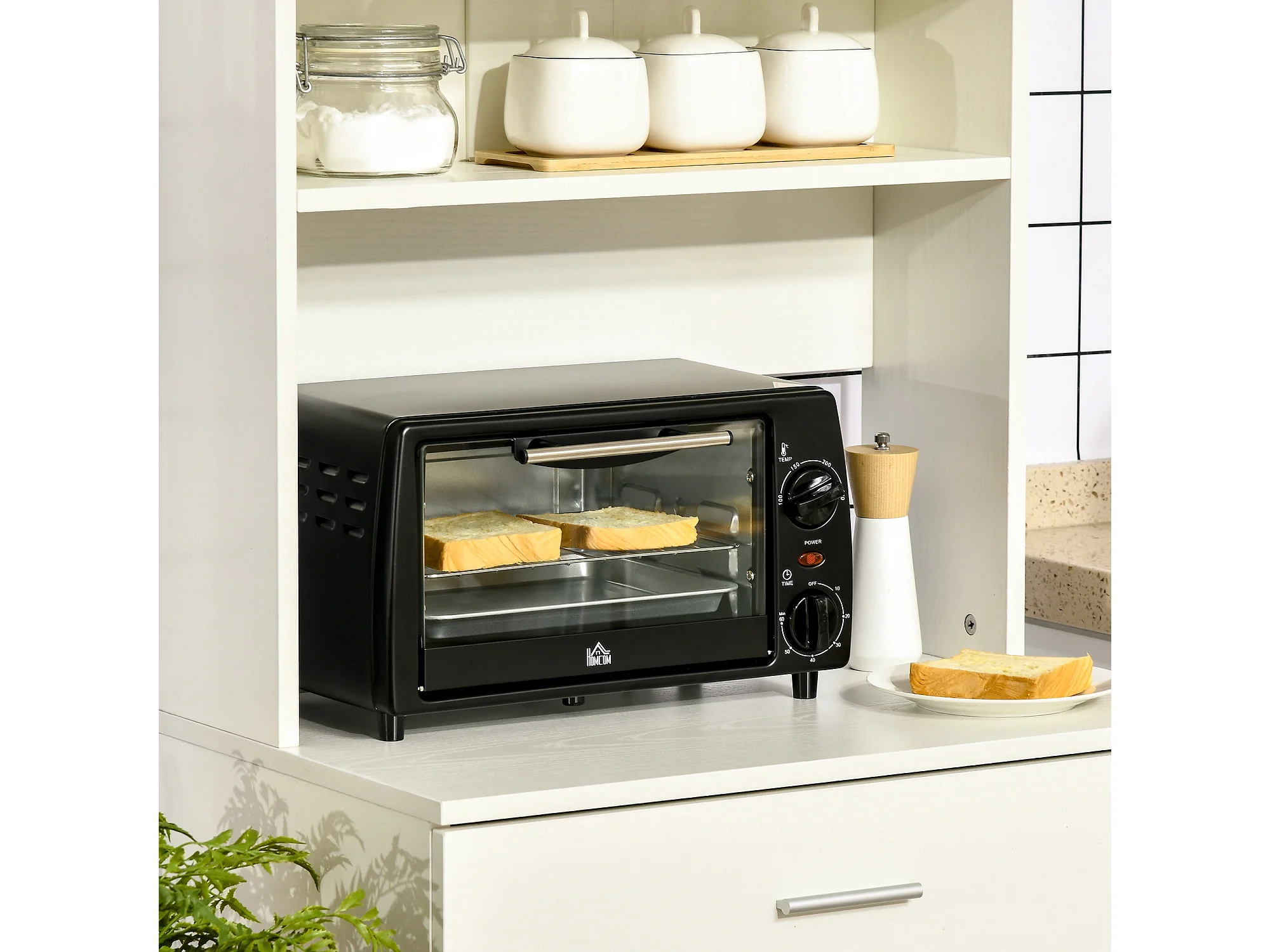 Mini four 16 L, 1400W, température réglable 100-230℃, 60 min Timer, avec grille et plaque de cuisson, noir (44x32x28.1cm)