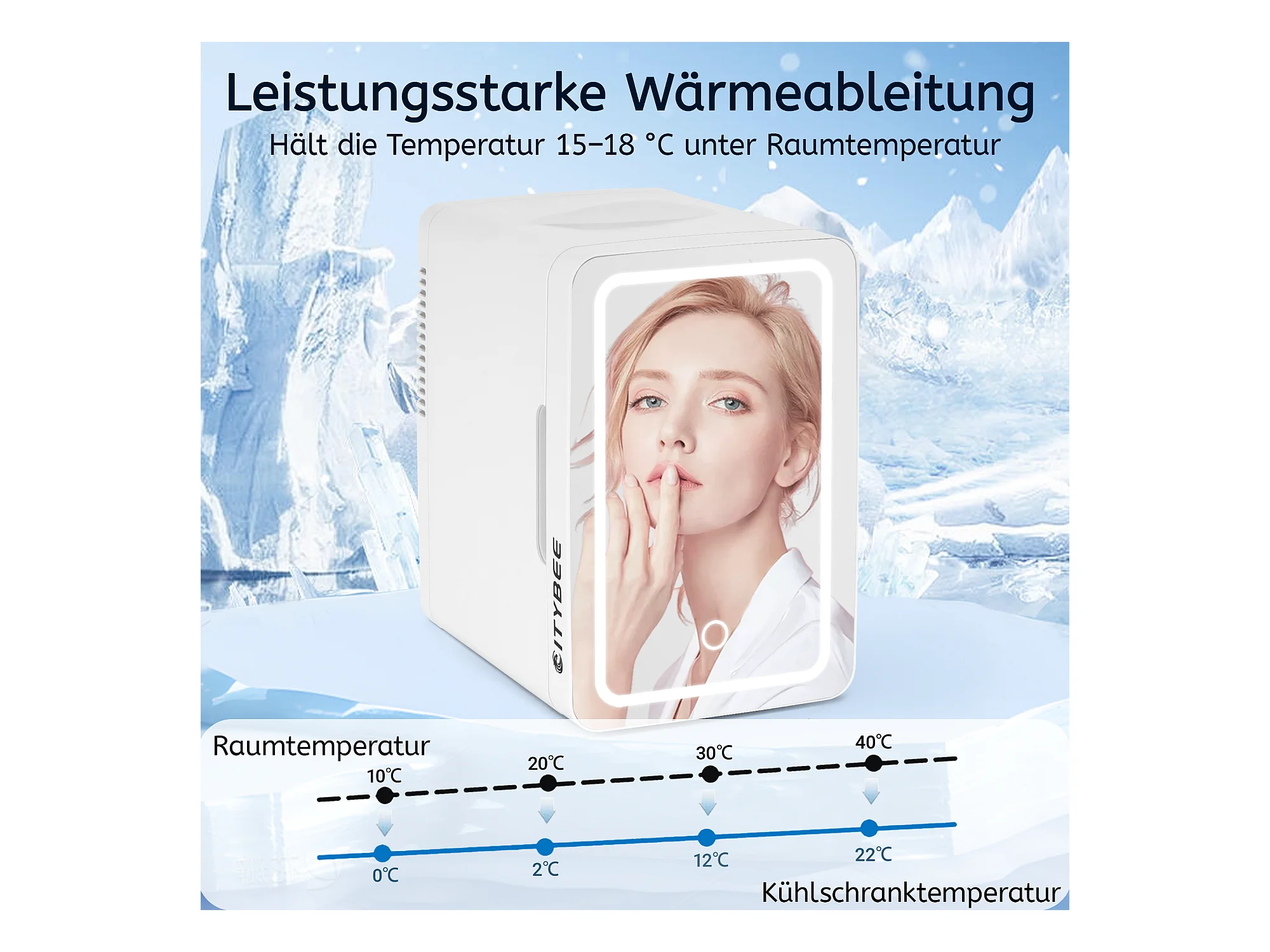 Mini réfrigérateur NETTLIFE 6 L - Petit réfrigérateur 12 V 230 V silencieux avec miroir et éclairage LED