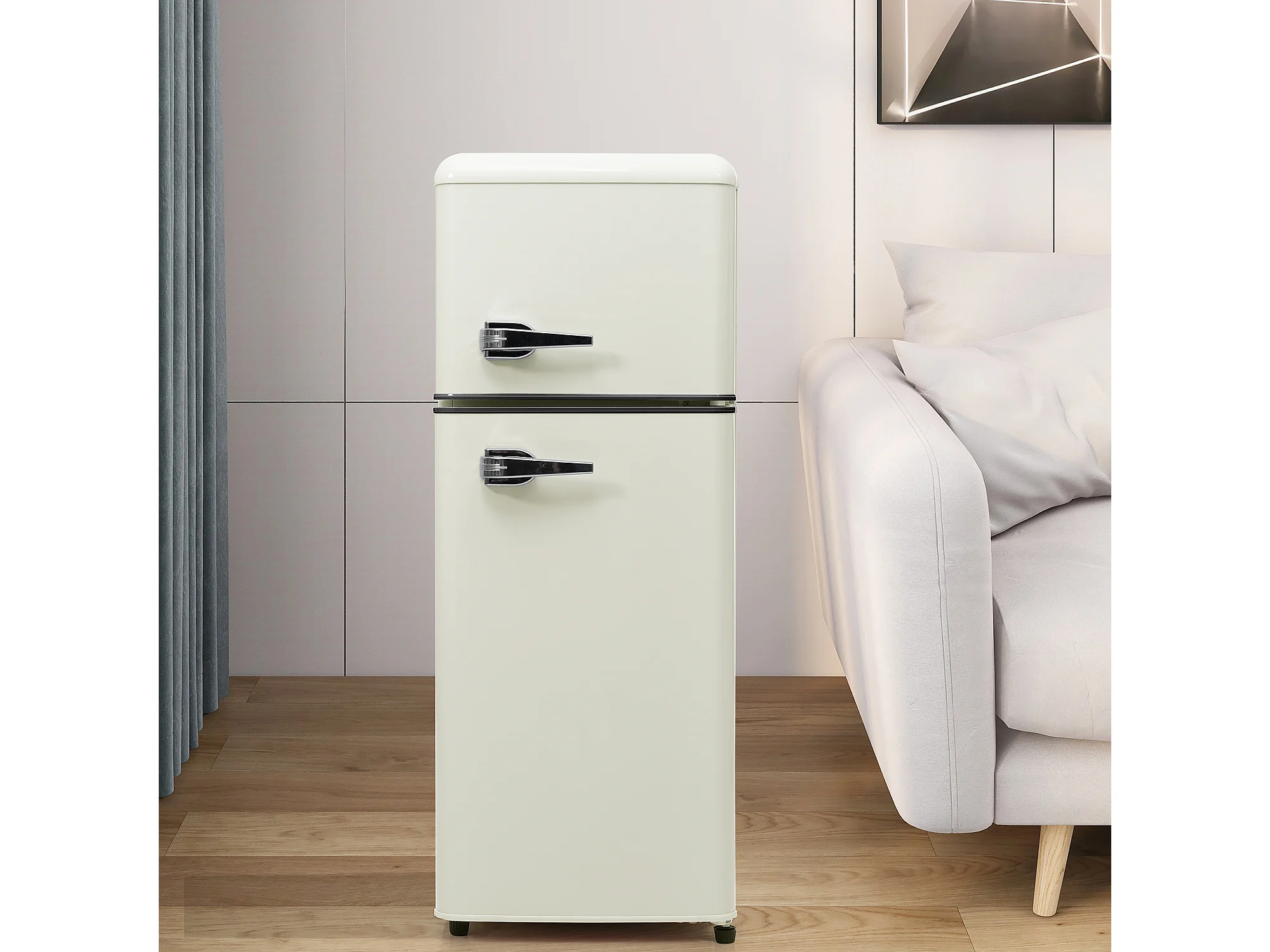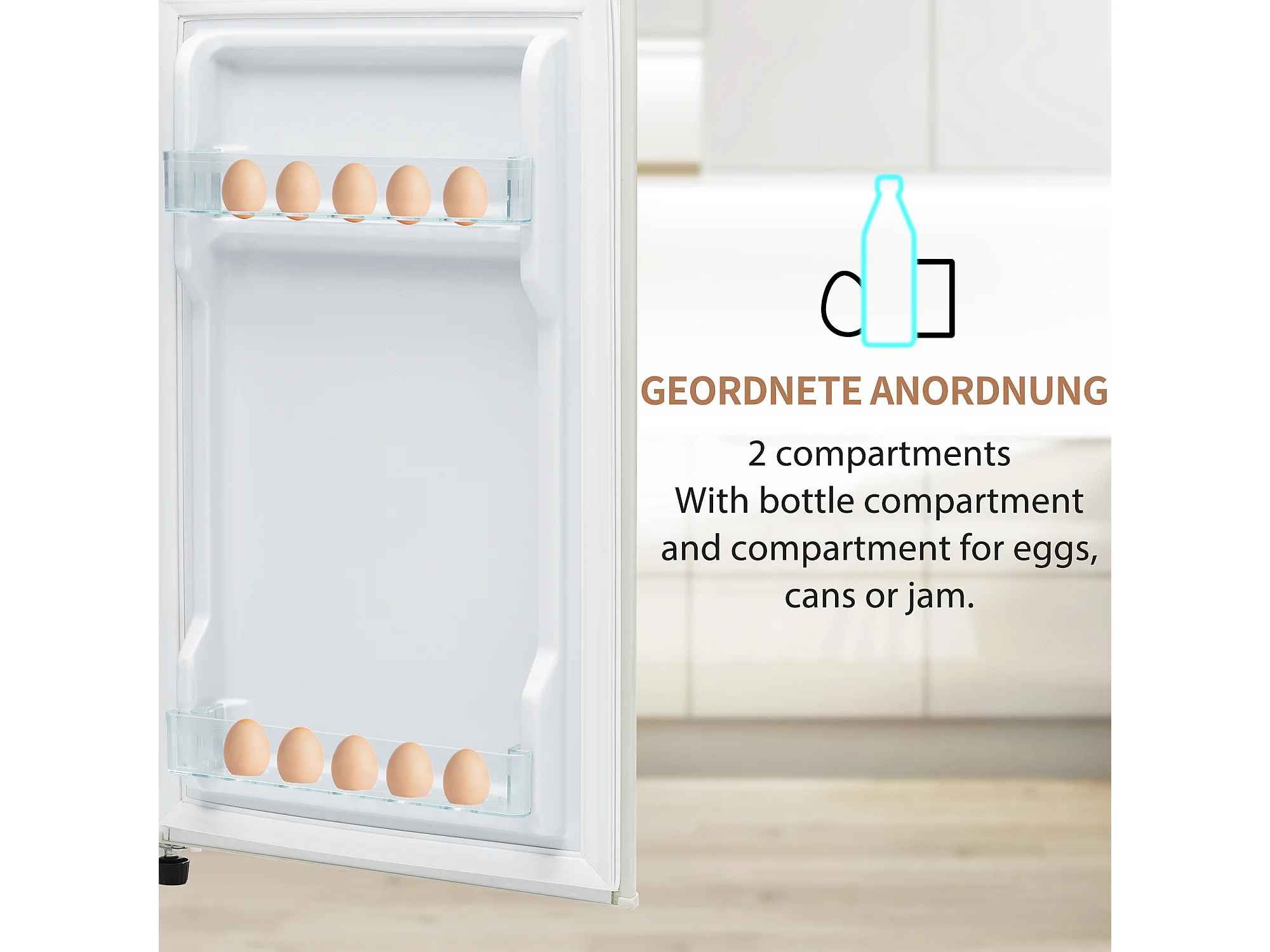 Mini Réfrigérateur Retro, 92L Total, 28L Congélateur, 64L Réfrigérateur, Énergie Classe D, LED, Design Rétro, Blanc (105.5x41x45.5cm)