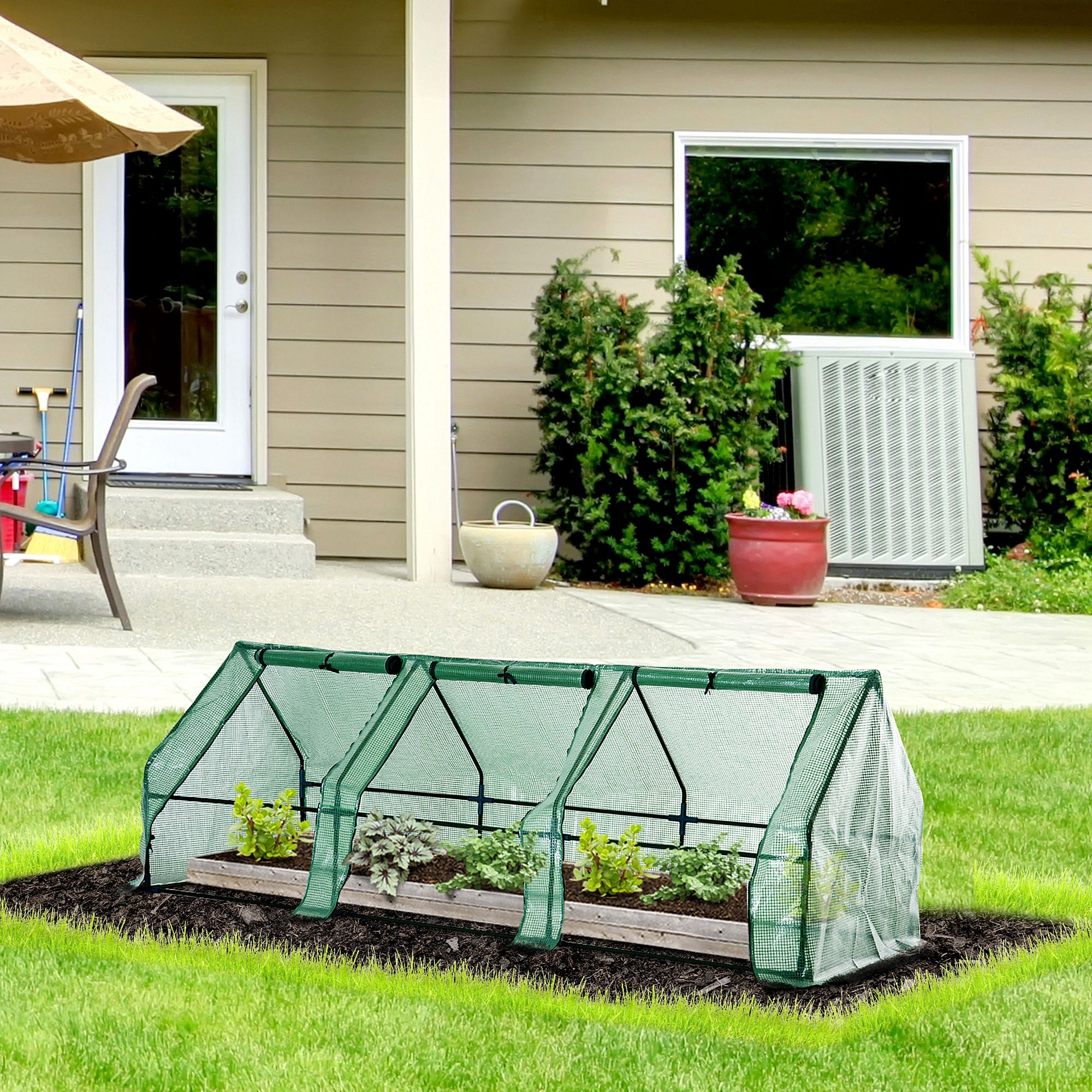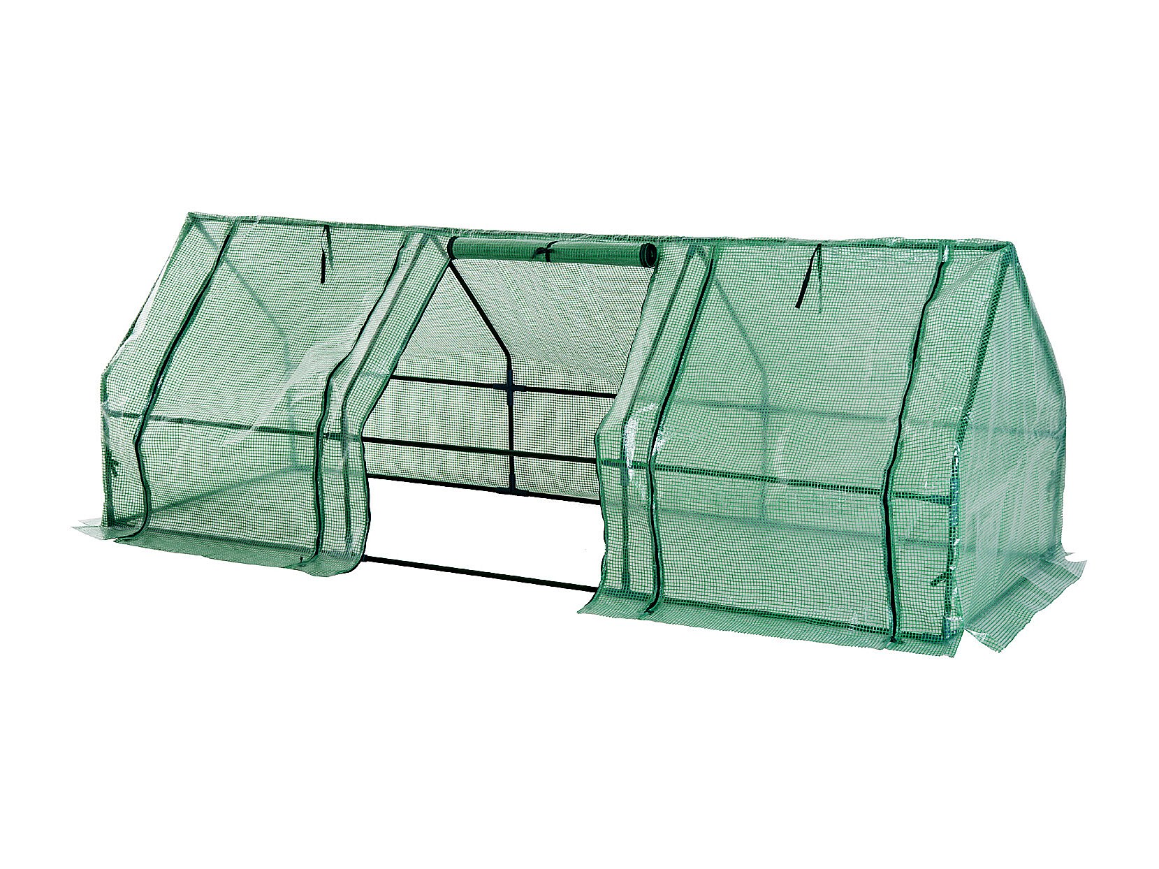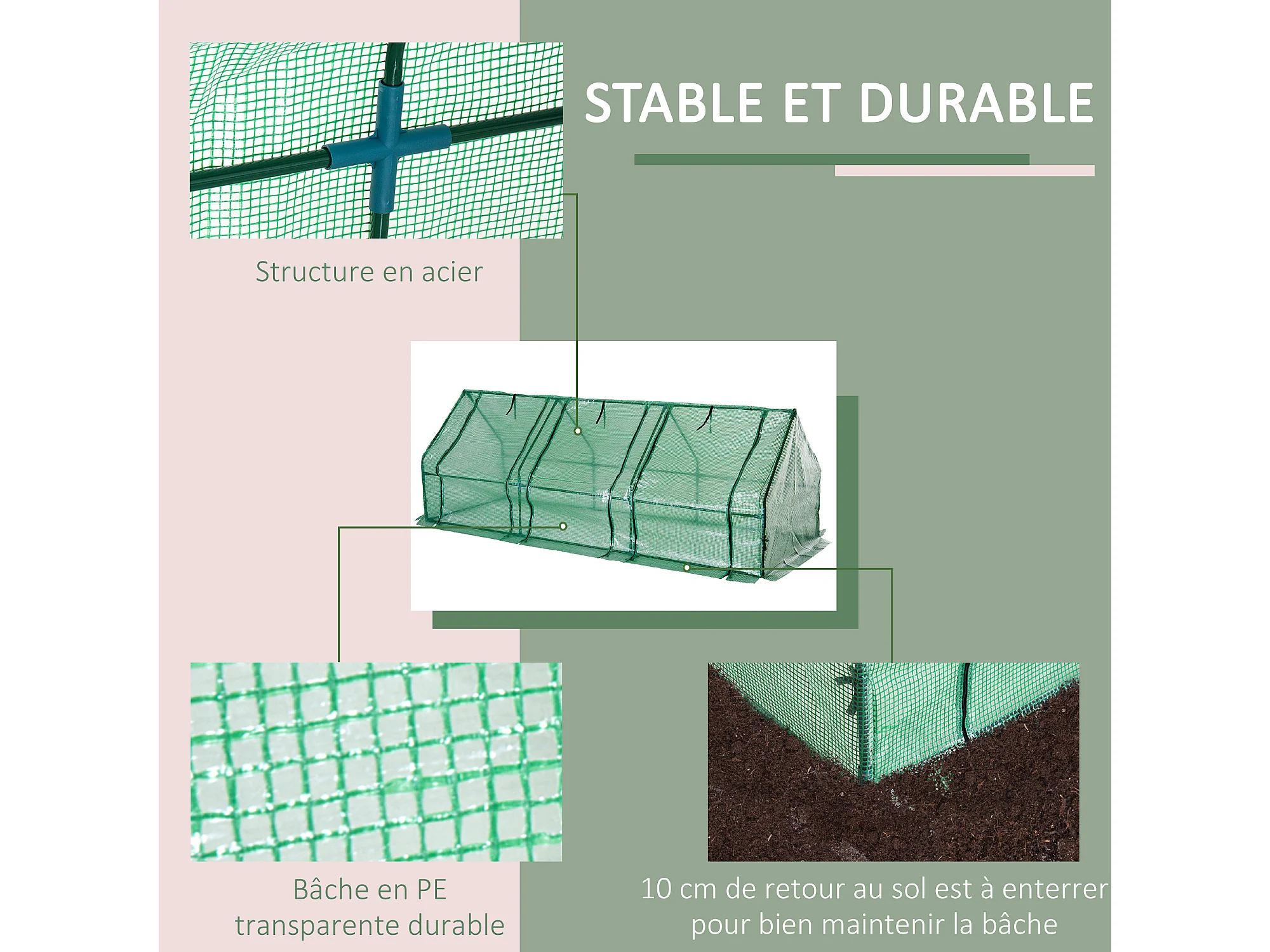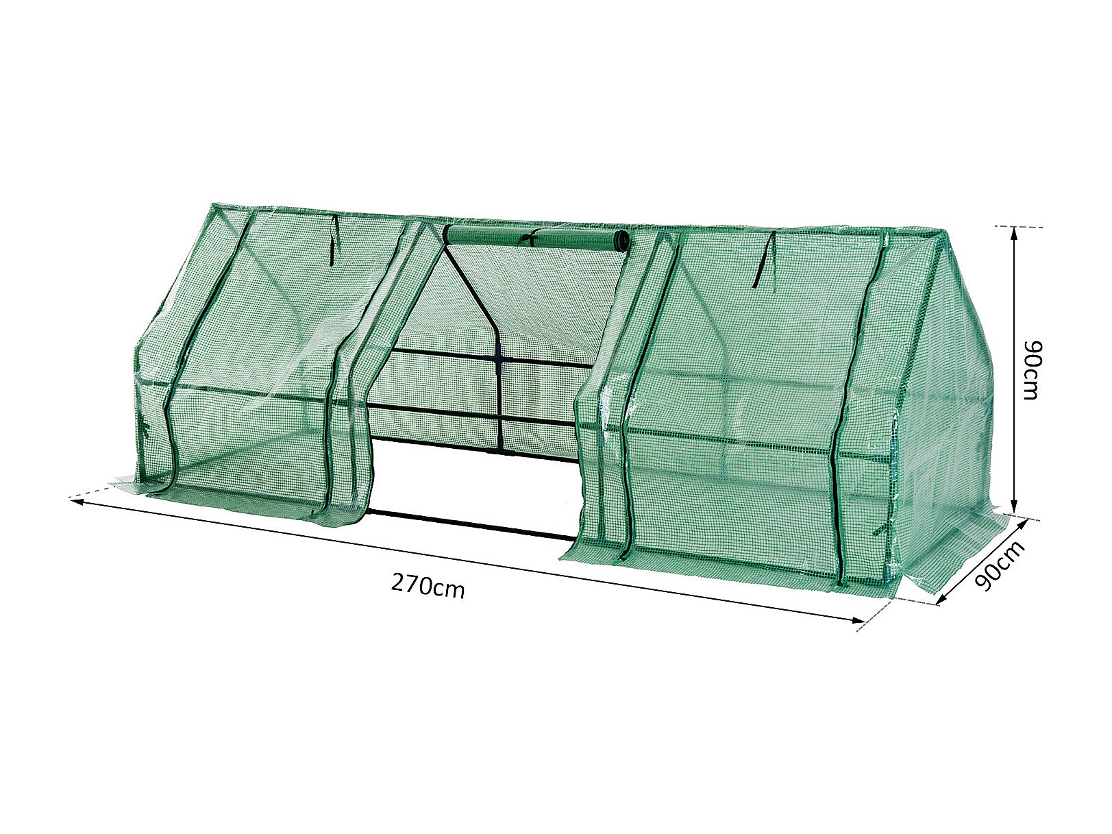 Mini serre de jardin 270L x 90l x 90H cm acier PE haute densité 140 g/m² anti-UV 3 fenêtres avec zip enroulables vert