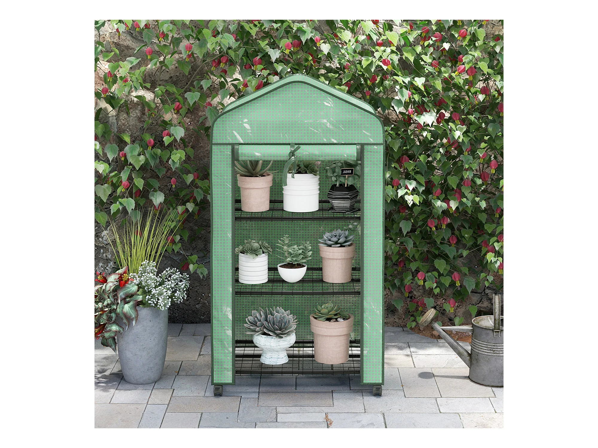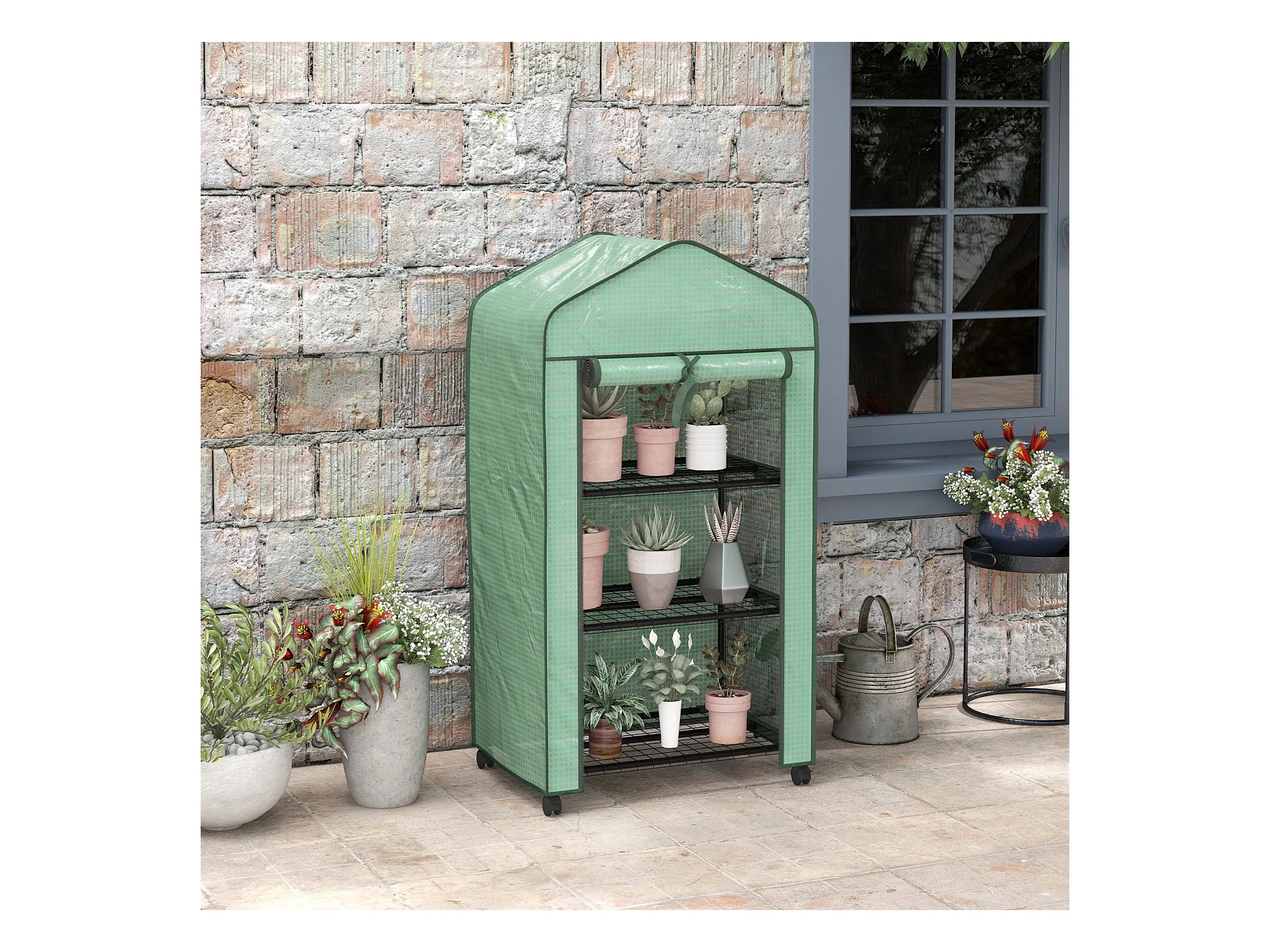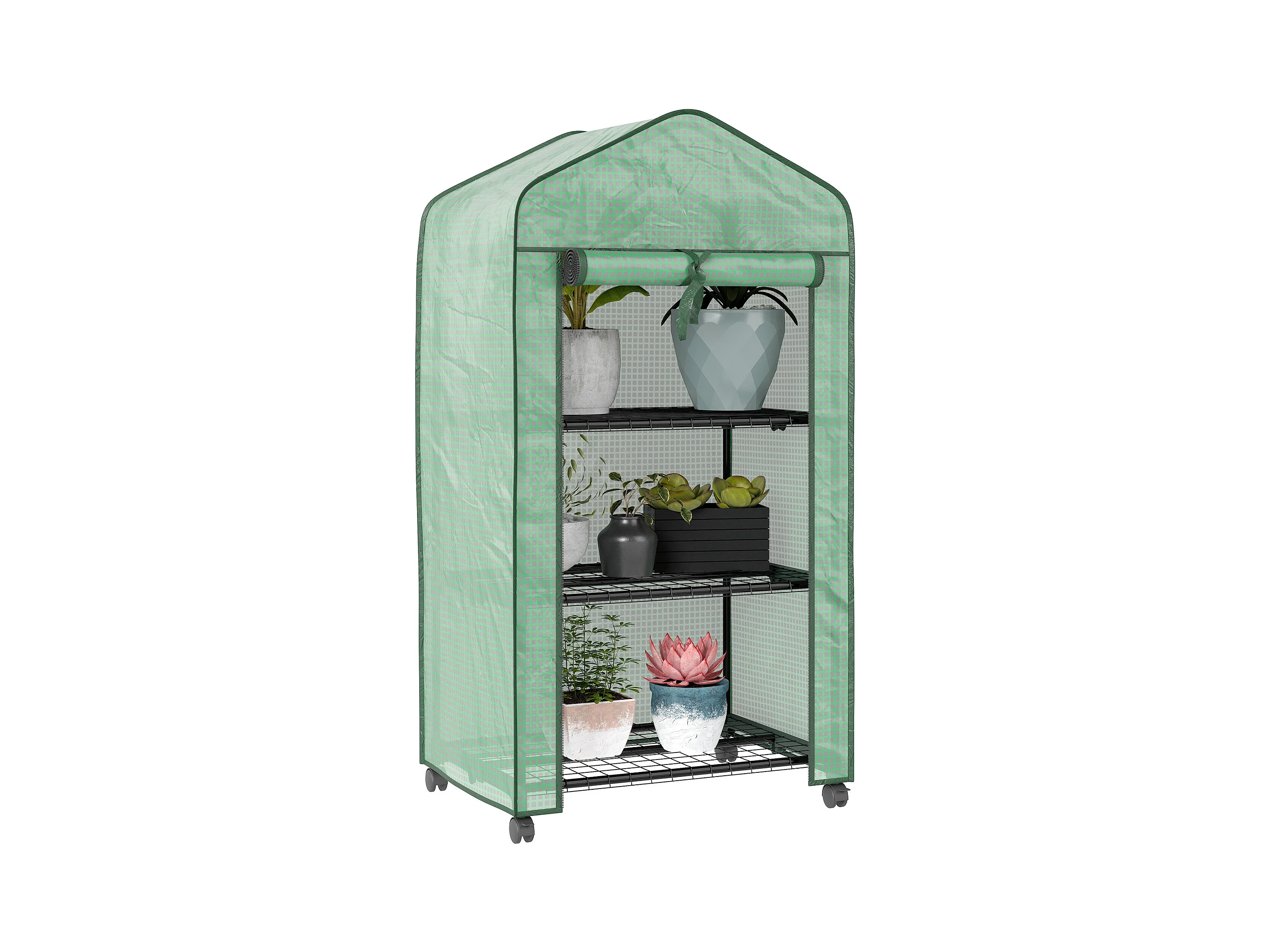 Mini serre de jardin 3 étagères porte enroulable 4 roulettes PE