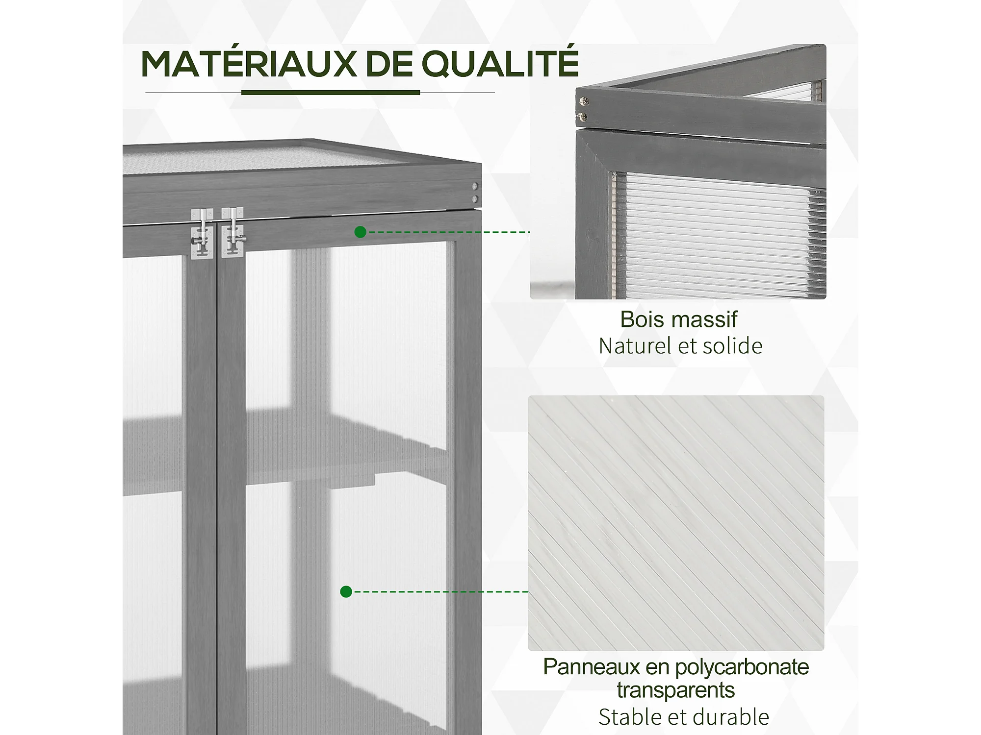Mini serre de jardin 3 niveaux dim. 76L x 47l x 110H cm double porte toit ouvrant bois sapin lasuré gris polycarbonate