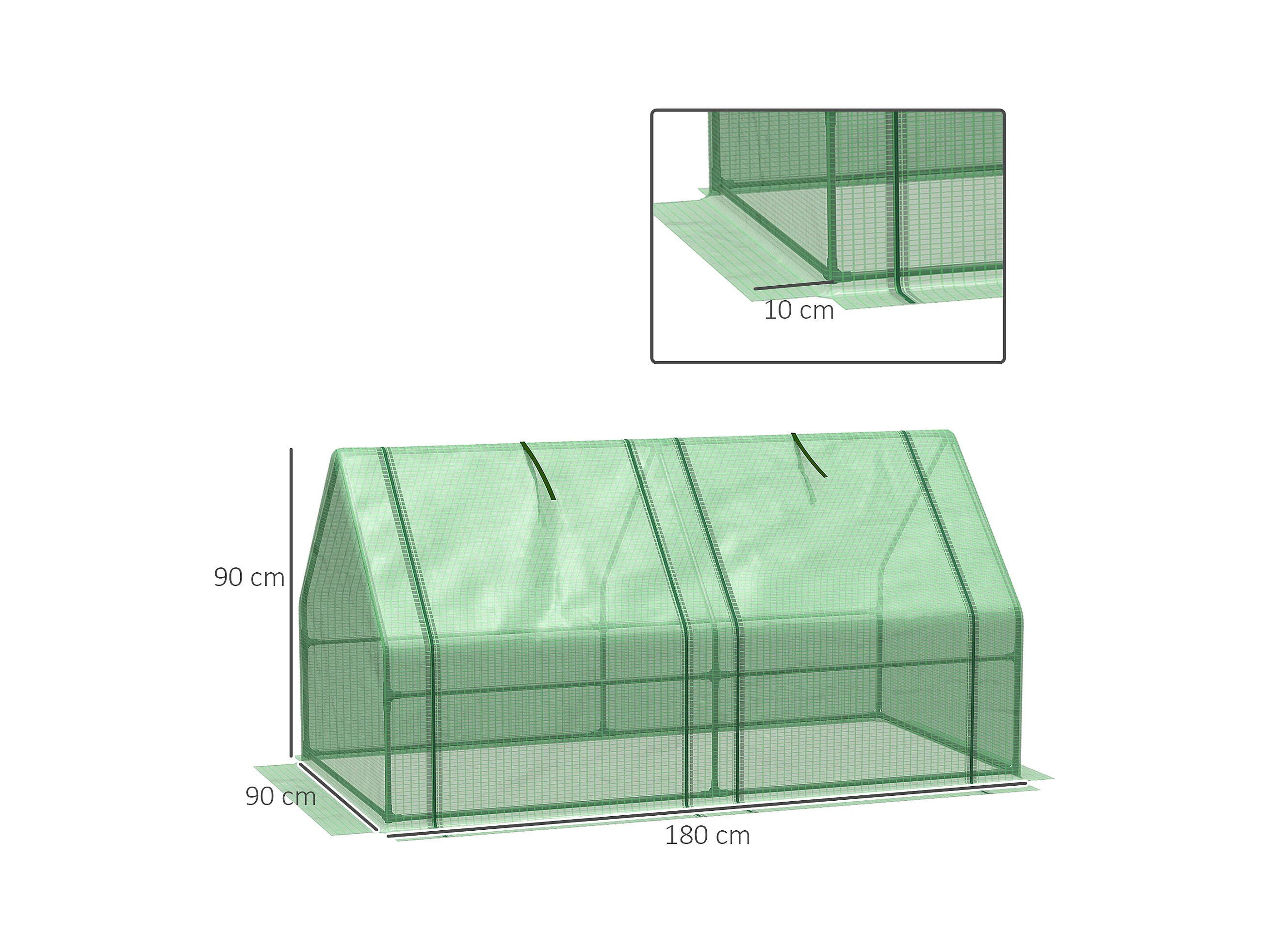Mini serre de jardin serre à tomates 1,8L x 0,9l x 0,7H m métal thermolaqué PE haute densité fenêtre moustiquaire intégrées vert