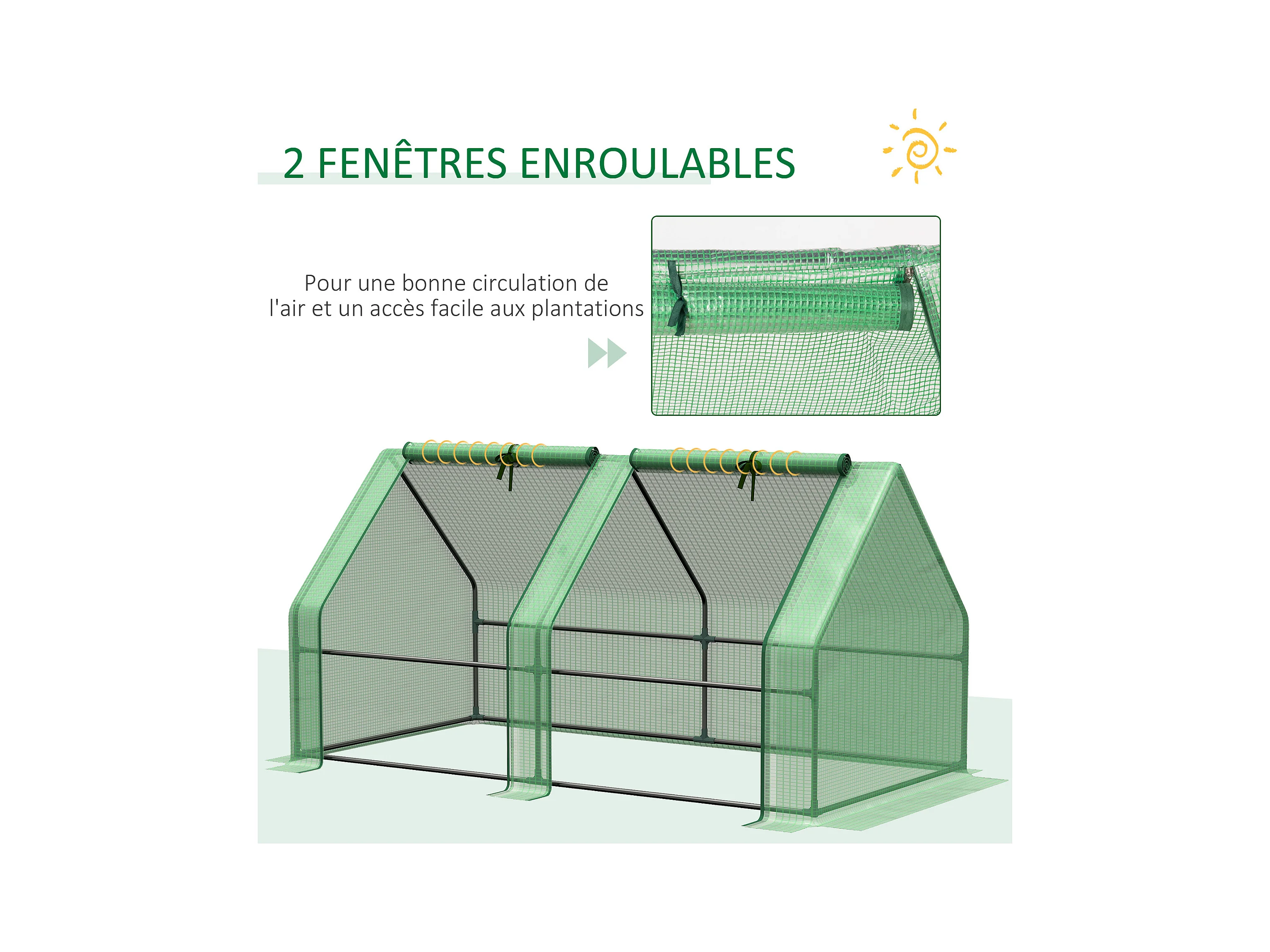 Mini serre de jardin serre à tomates dim. 180L x 90l x 90H cm acier PE haute densité 140 g/m² anti-UV 2 fenêtres zippées enroulables vert