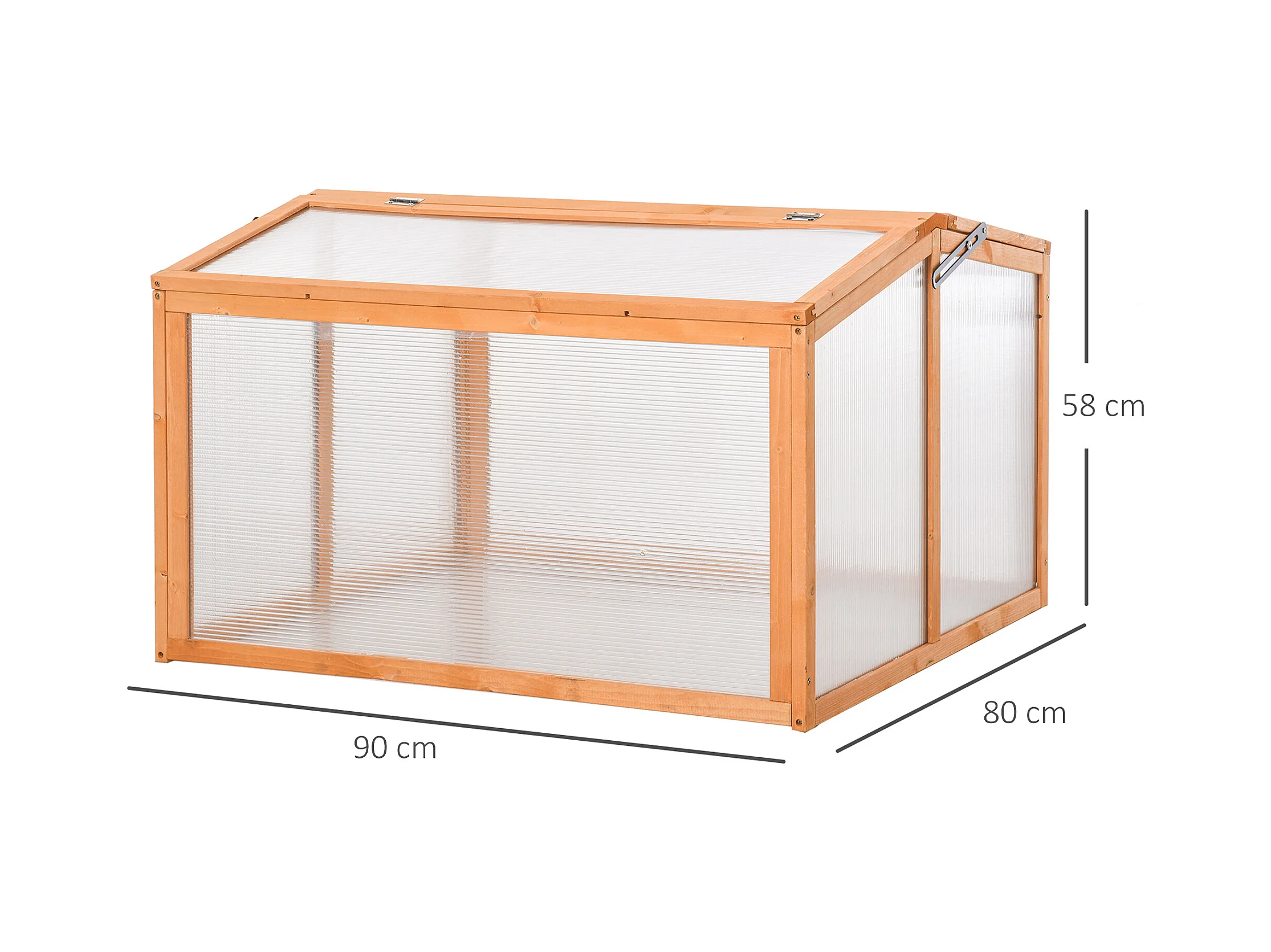 Mini serre de jardin serre à tomates dim. 90L x 80l x 58H cm toits ouvrables panneaux de polycarbonate bois sapin pré-huilé