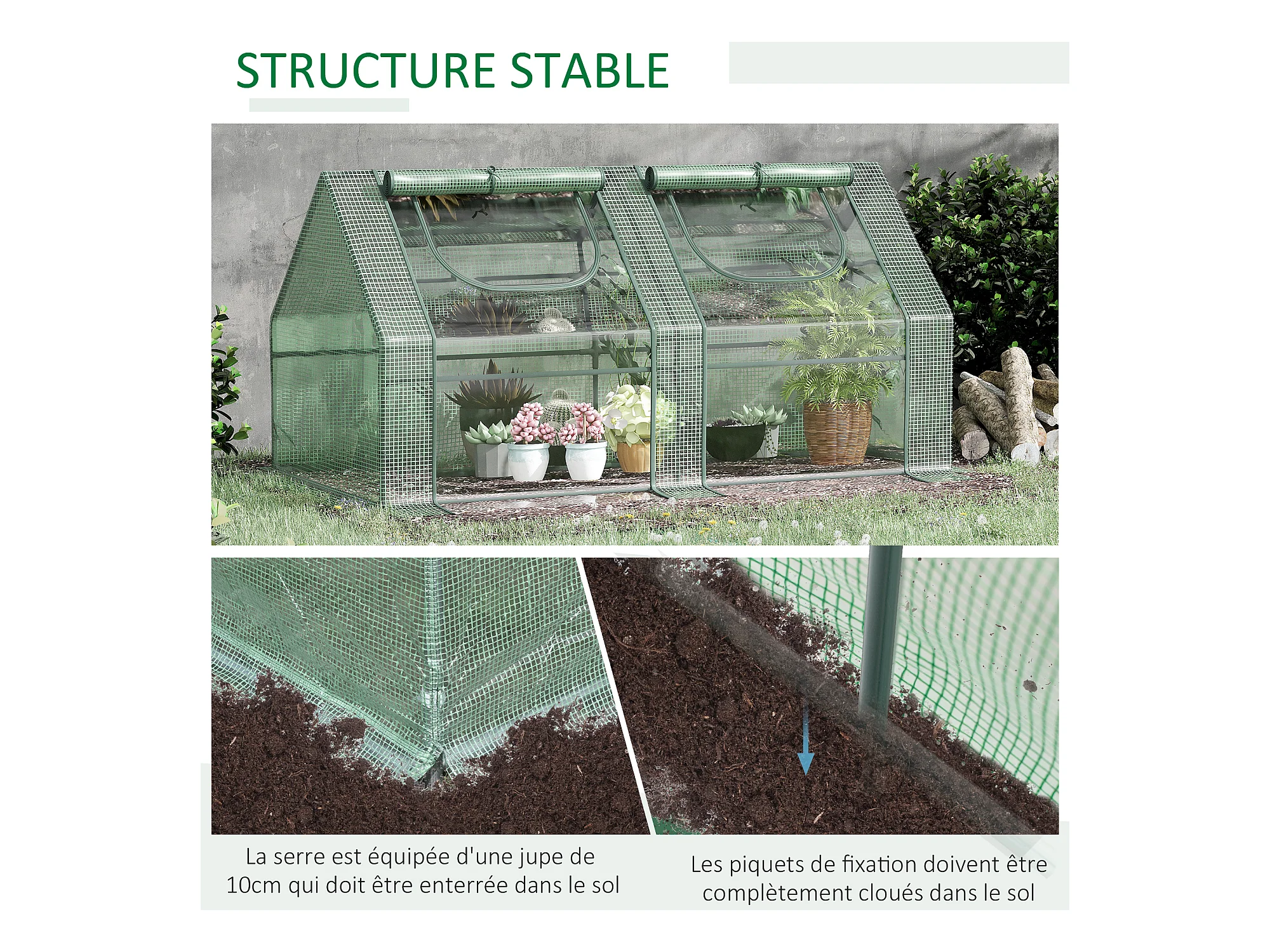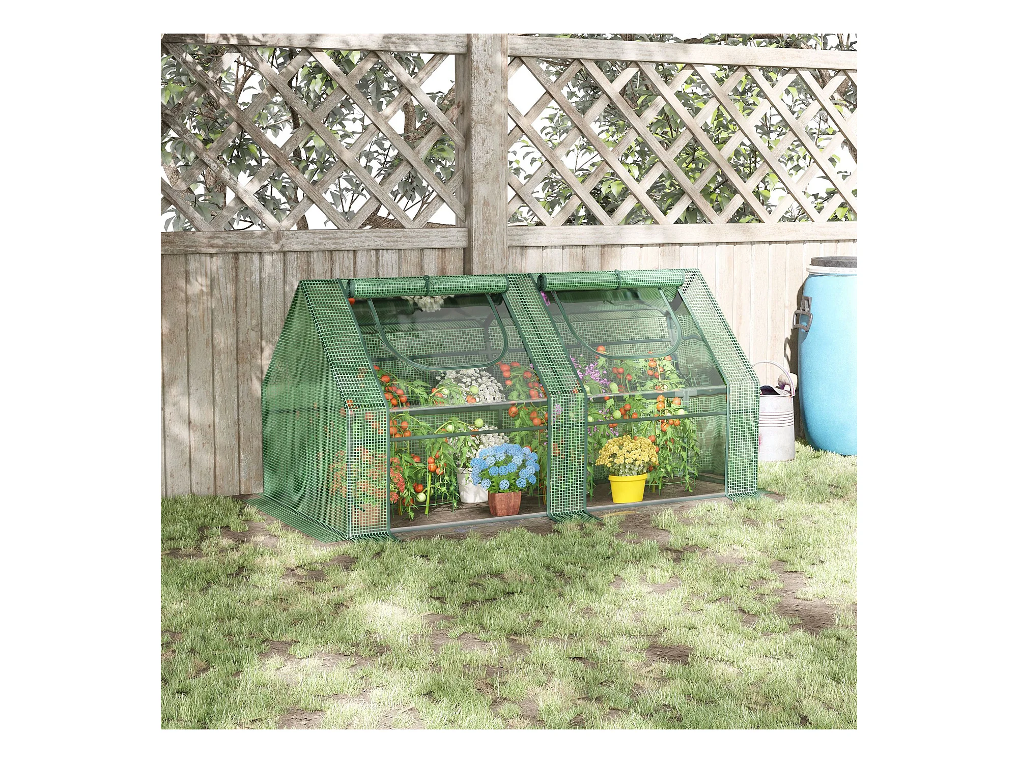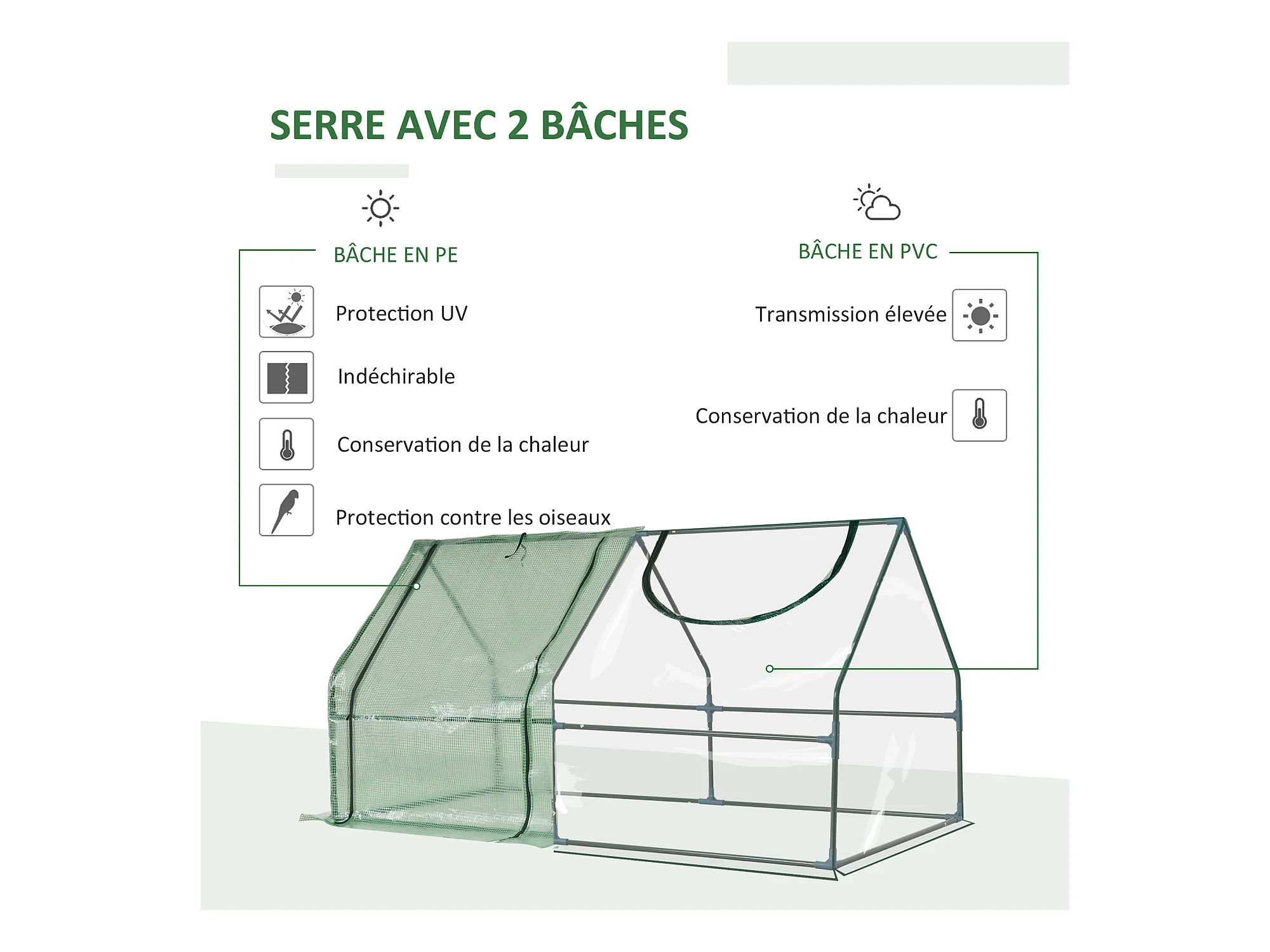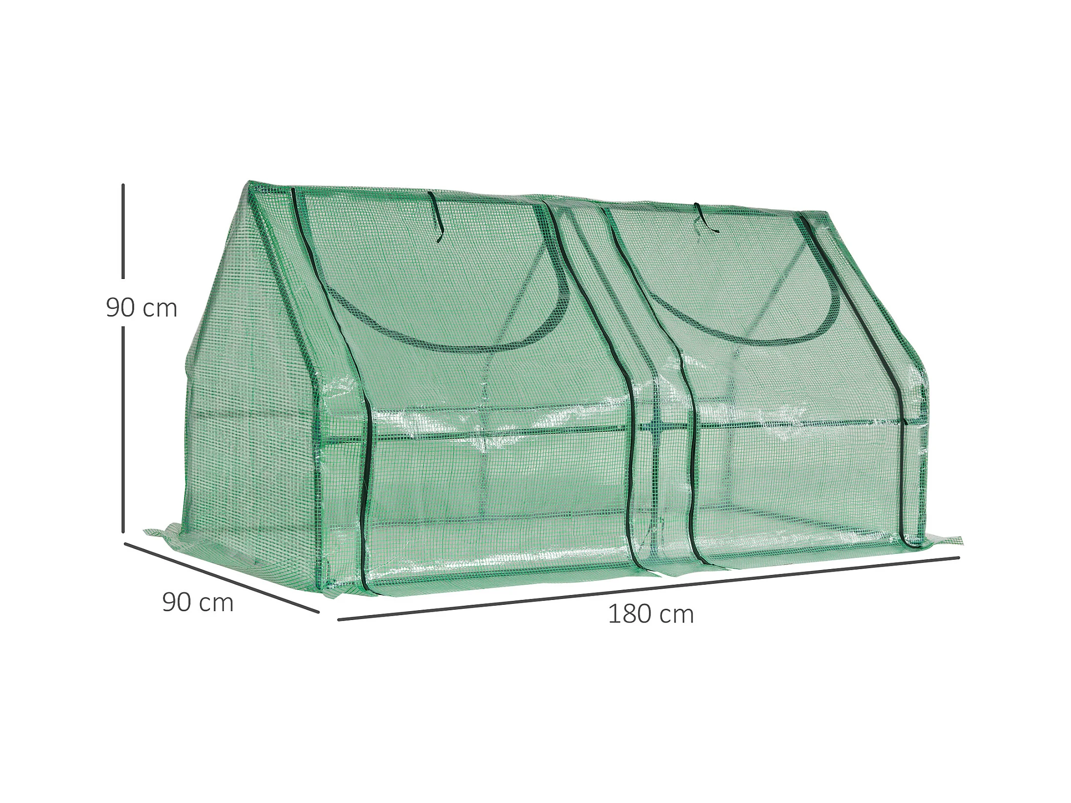 Mini serre de jardin serre à tomates double bâche 180L x 90l x 90H cm acier PE PVC 2 fenêtres avec zip enroulables vert