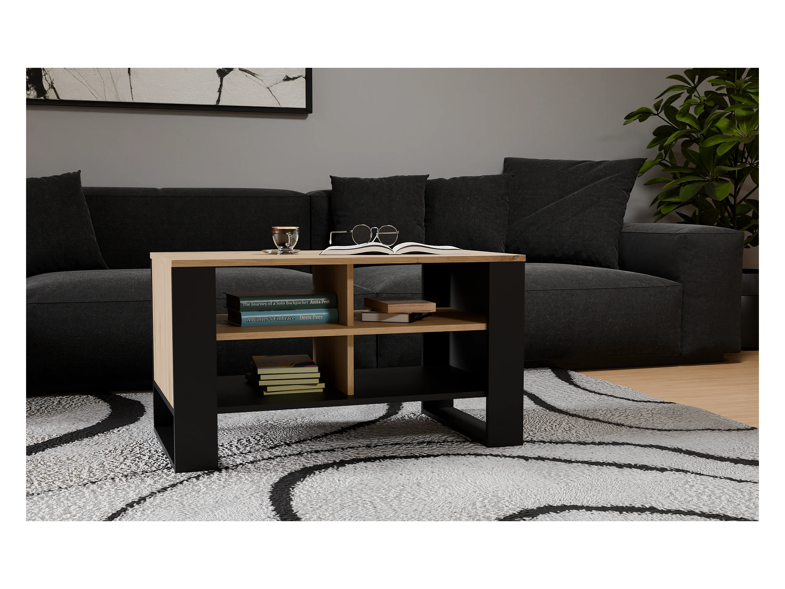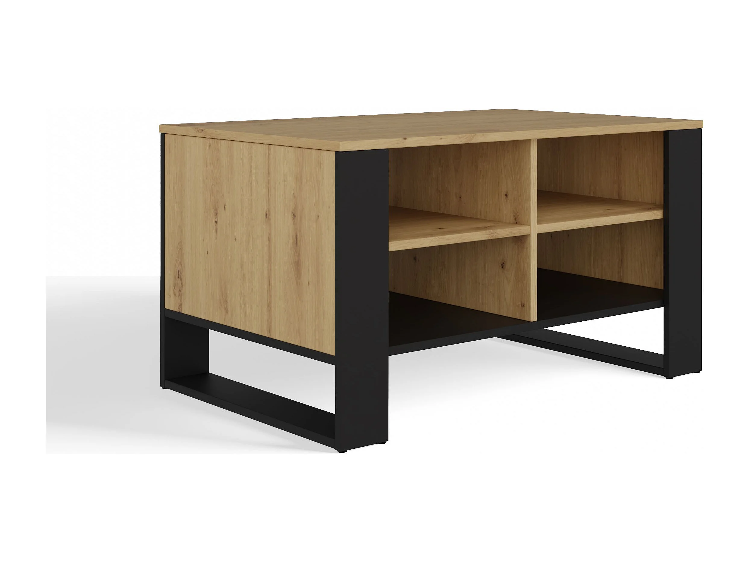 MINI - Table basse rectangulaire industrielle - 90x58x50 - Table basse avec deux étagères effet lattes