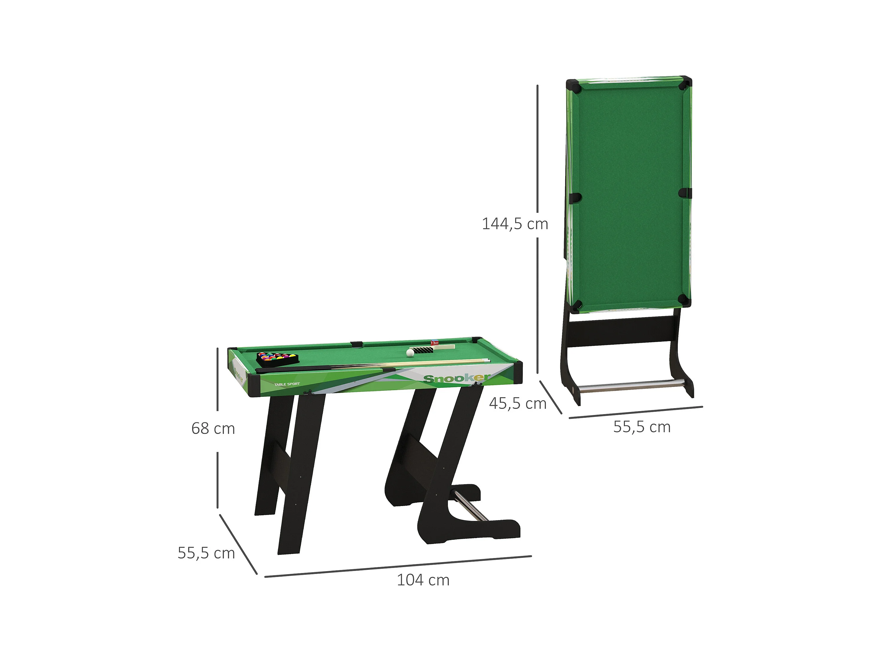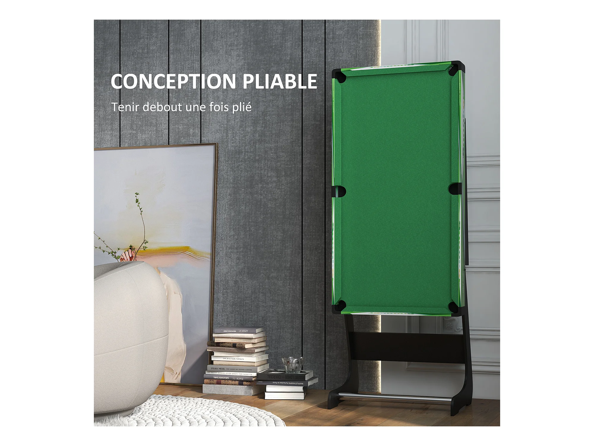 Mini table de billard pliable avec accessoires - dim. 104L x 55,5l x 68H cm - acier MDF noir vert