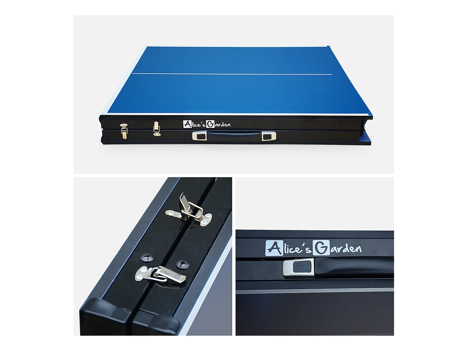 Table de ping-pong pliable compacte avec 4 roulettes bleu