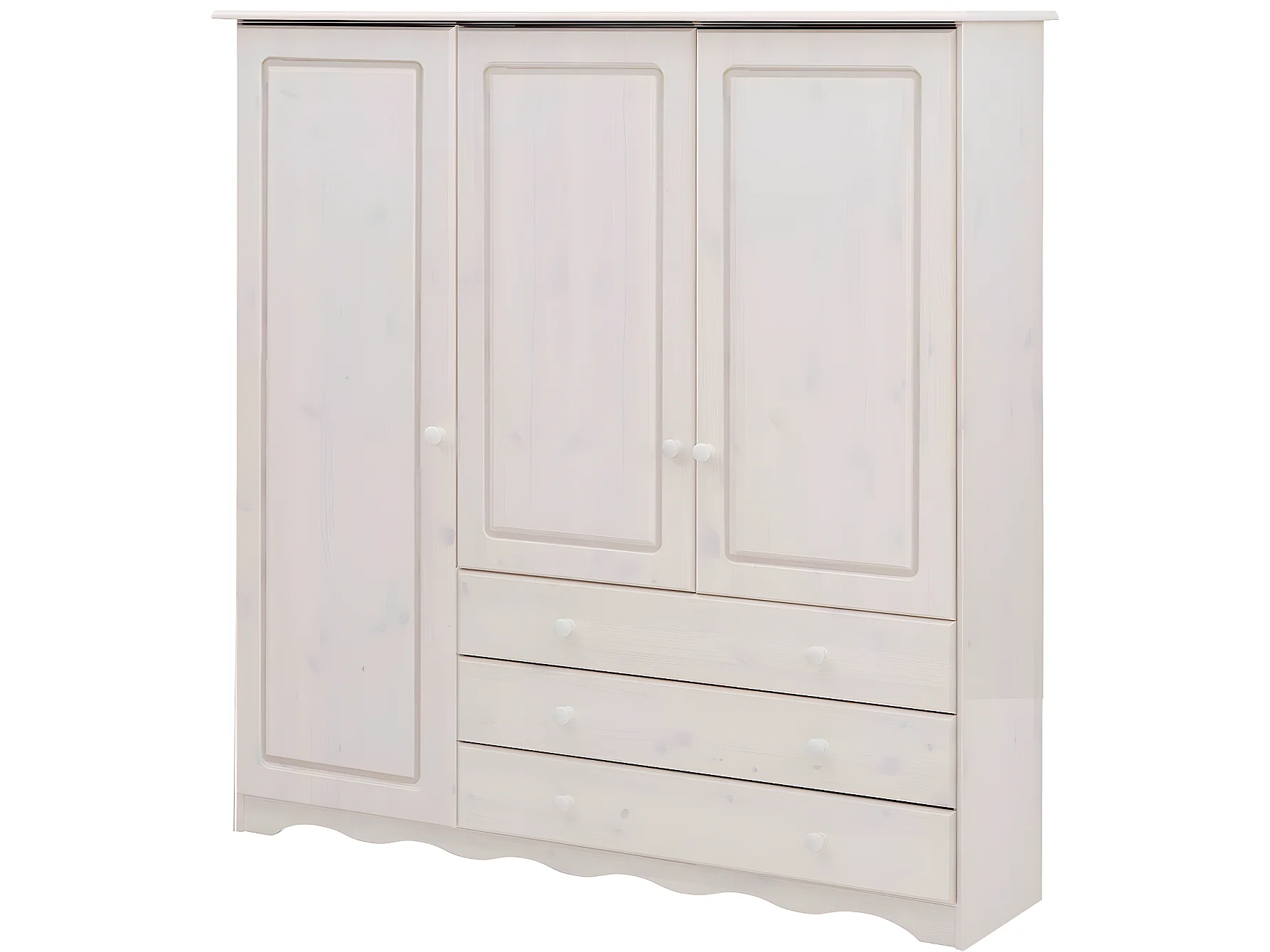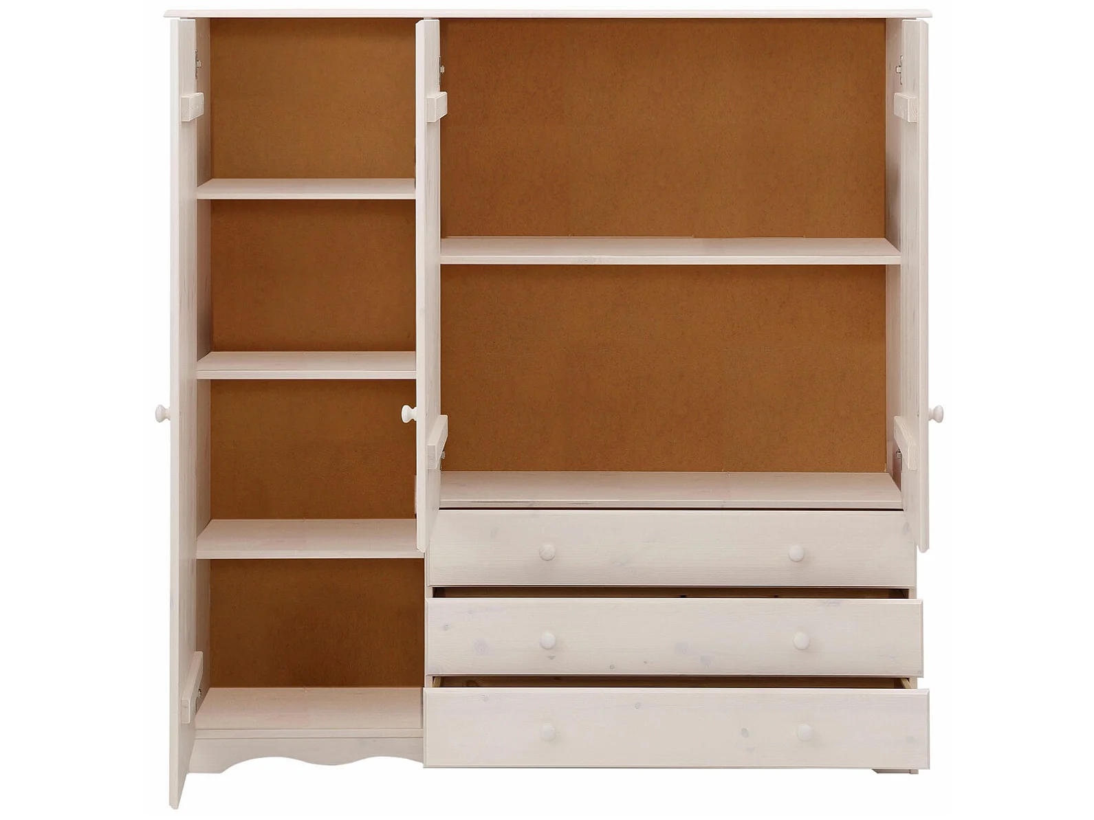 Minik|Armoire avec 3 portes et 3 tiroirs en pin blanc