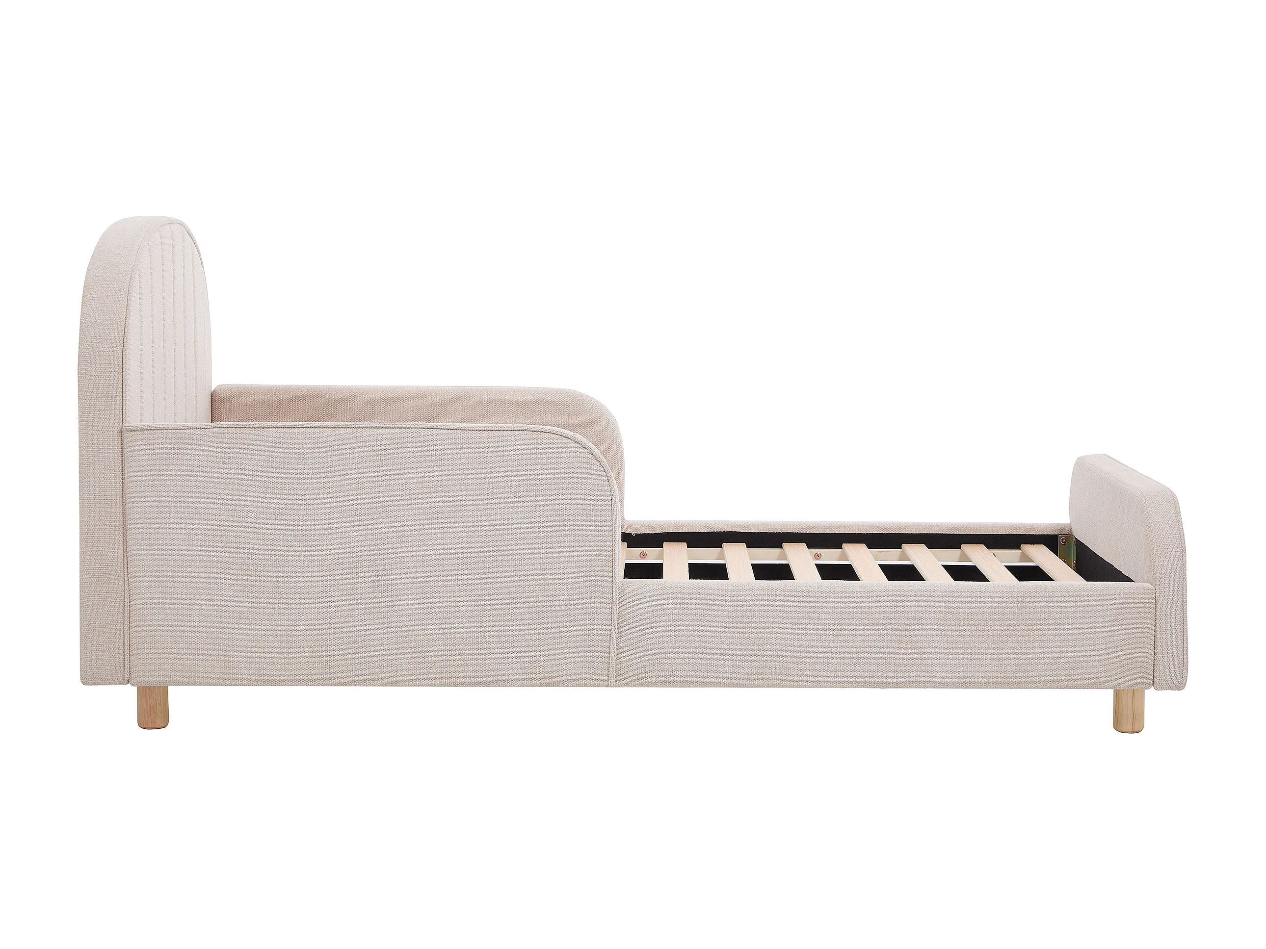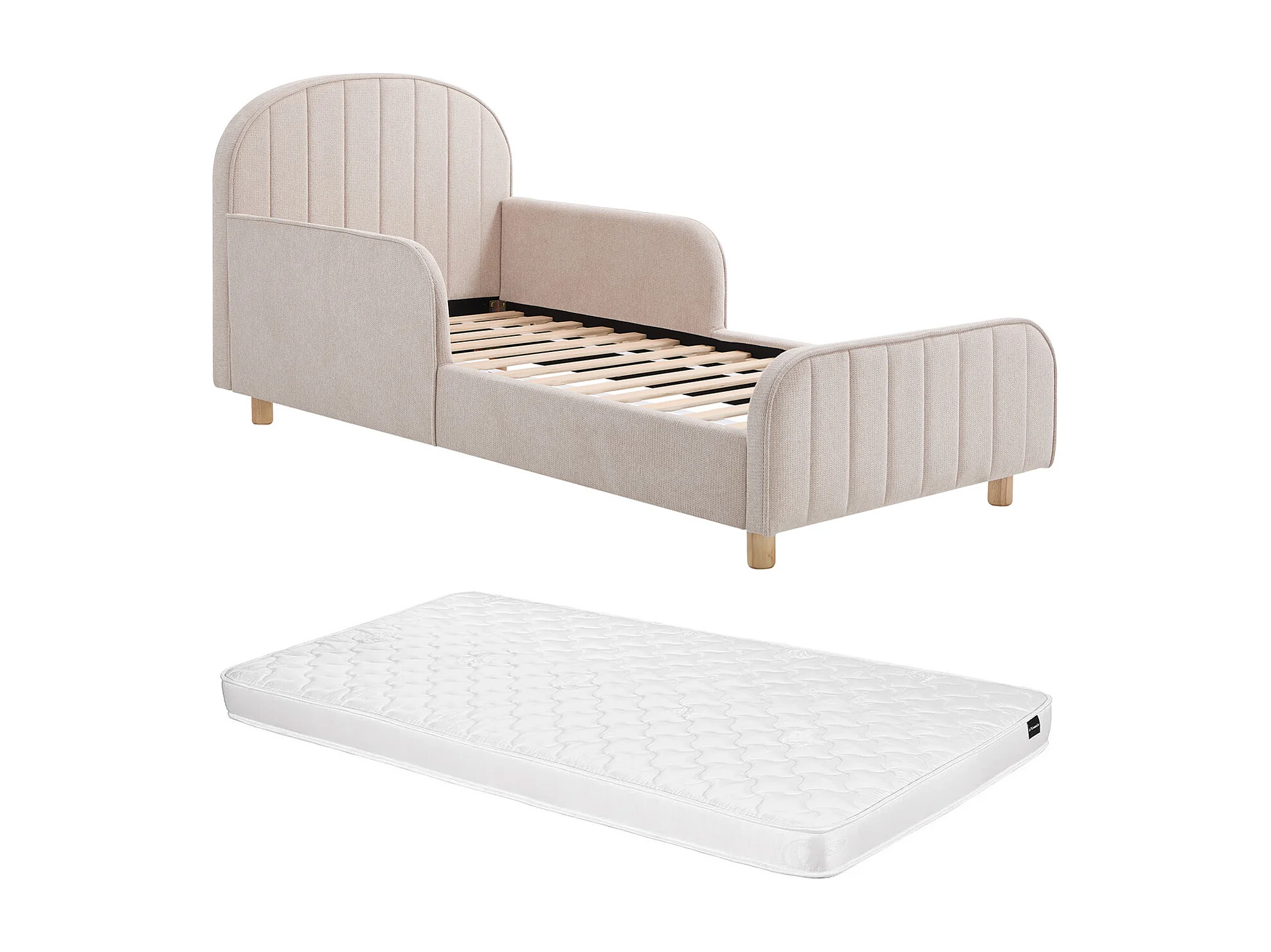 Lit 90 x 190 cm – Tissu texturé – Beige + Matelas – MIRAVELO