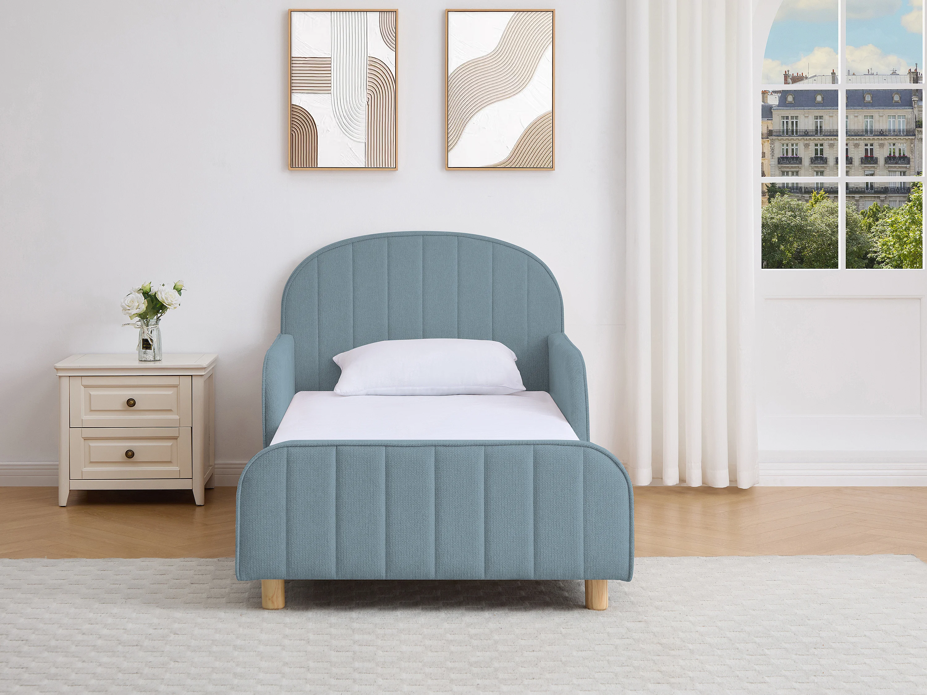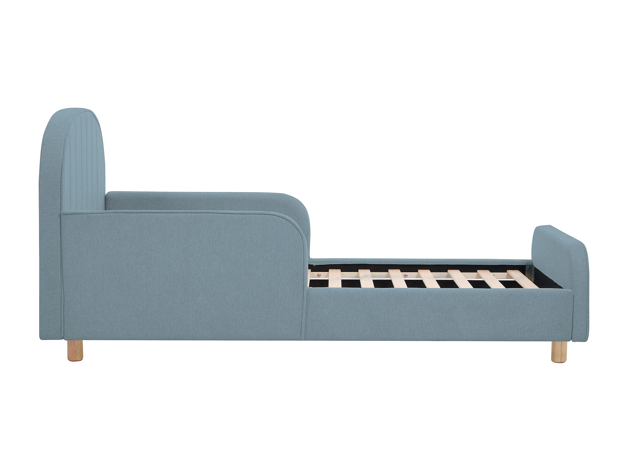 Lit 90 x 190 cm – Tissu texturé – Bleu + Matelas – MIRAVELO