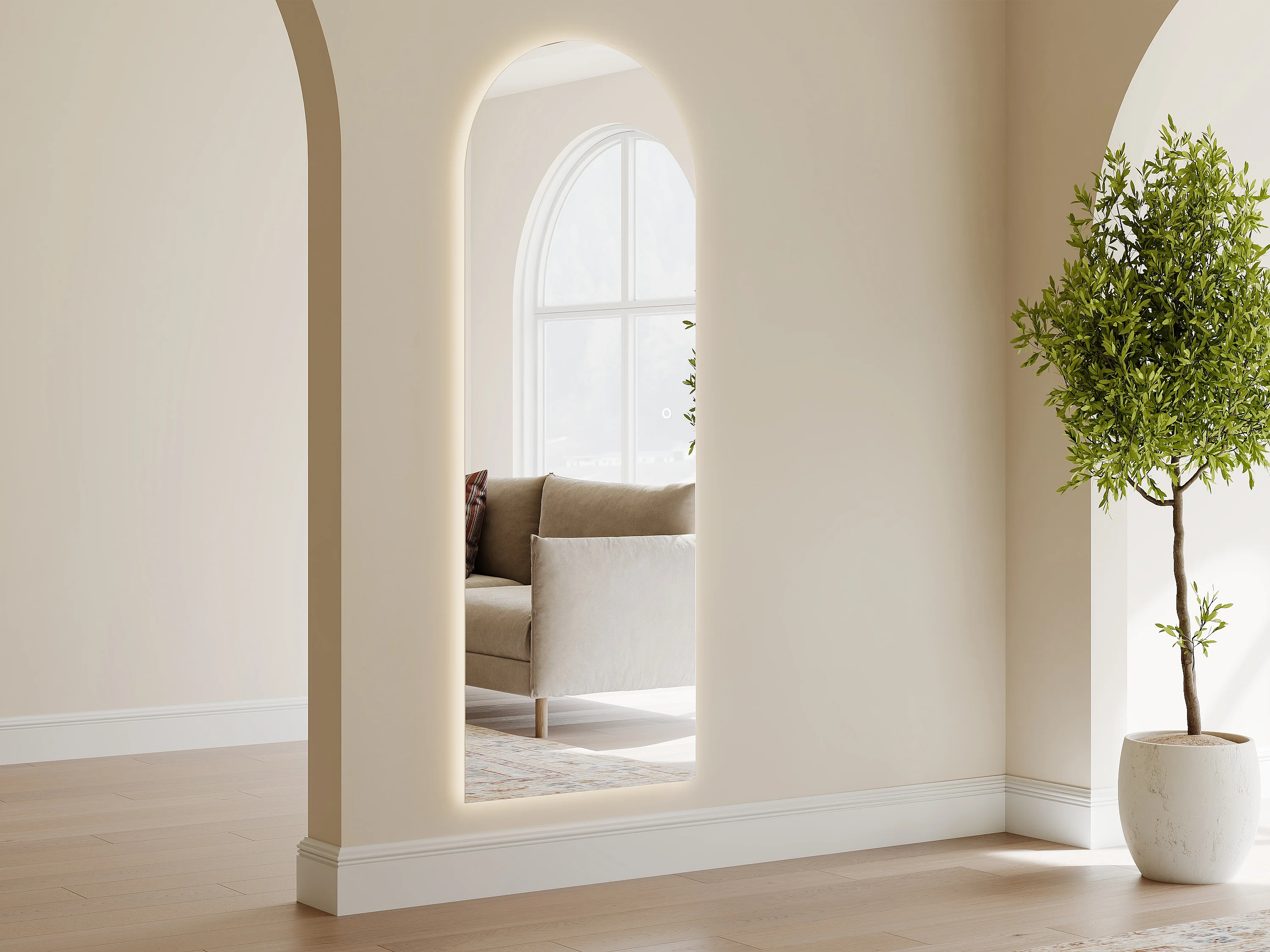 Miroir de salle de bain lumineux en arche anti-buée avec bouton tactile - 60 x 165 cm - MIRAVENA