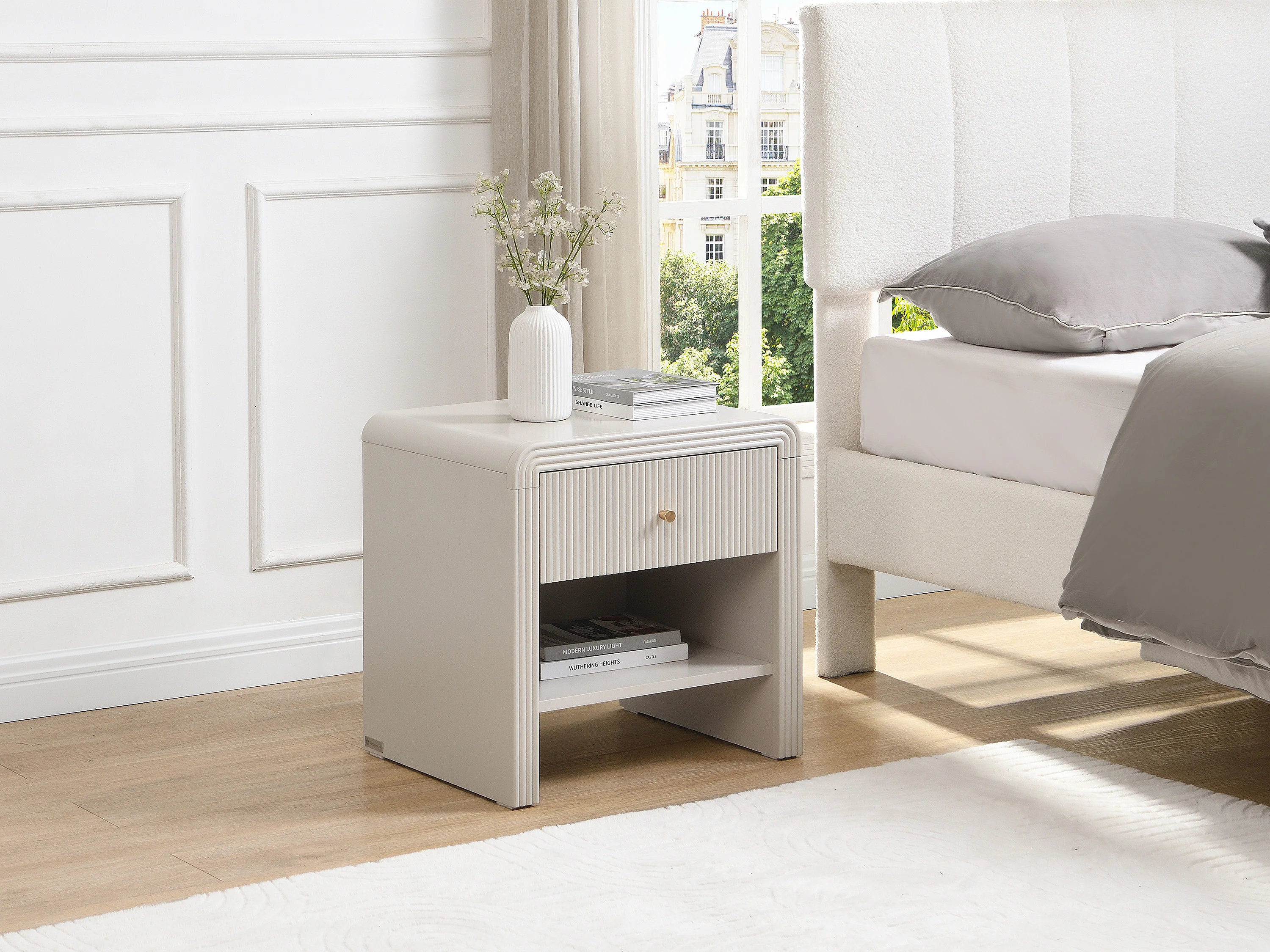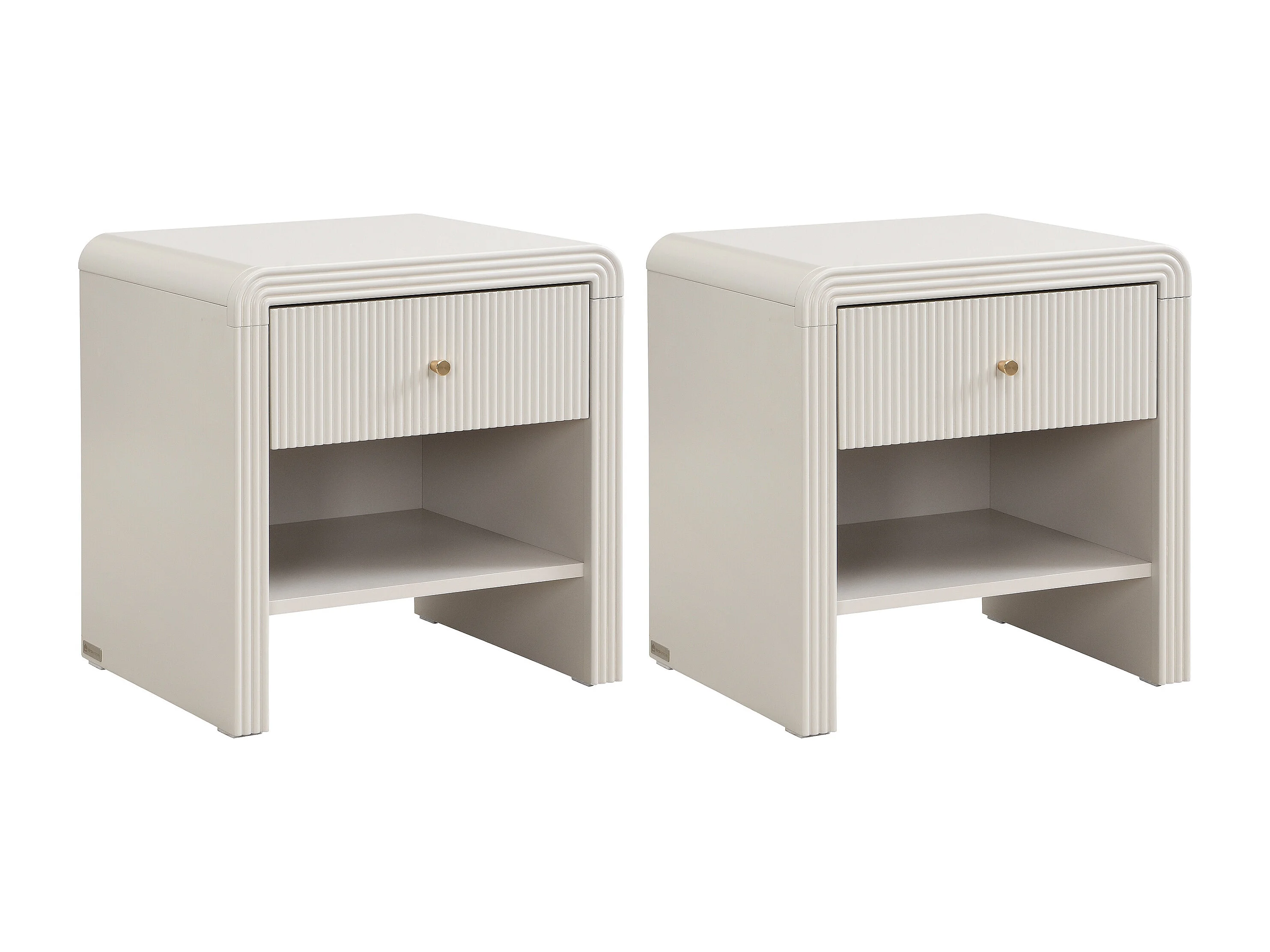 Lot de 2 tables de chevet avec 1 tiroir et 1 niche - MDF - Beige et doré - MIRENALO