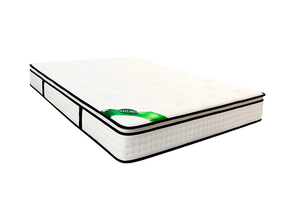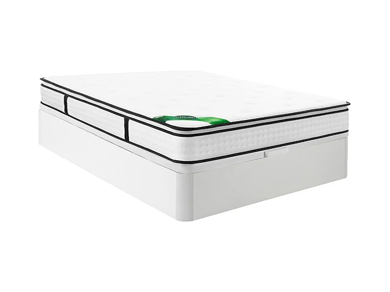 Ensemble 140 x 190 cm sommier coffre blanc + matelas ressorts ensachés 7 zones surmatelas intégré et coutil bambou ép.26cm - MIREZA de NATUREA