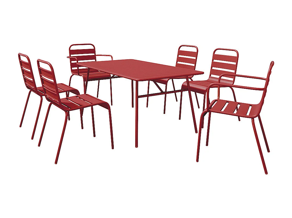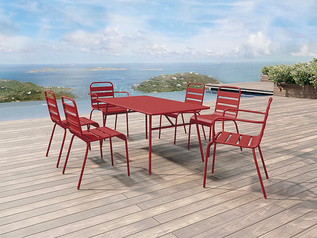 Salle à manger de jardin en métal - une table L.160 cm avec 2 fauteuils empilables et 4 chaises empilables - Rouge - MIRMANDE de MYLIA