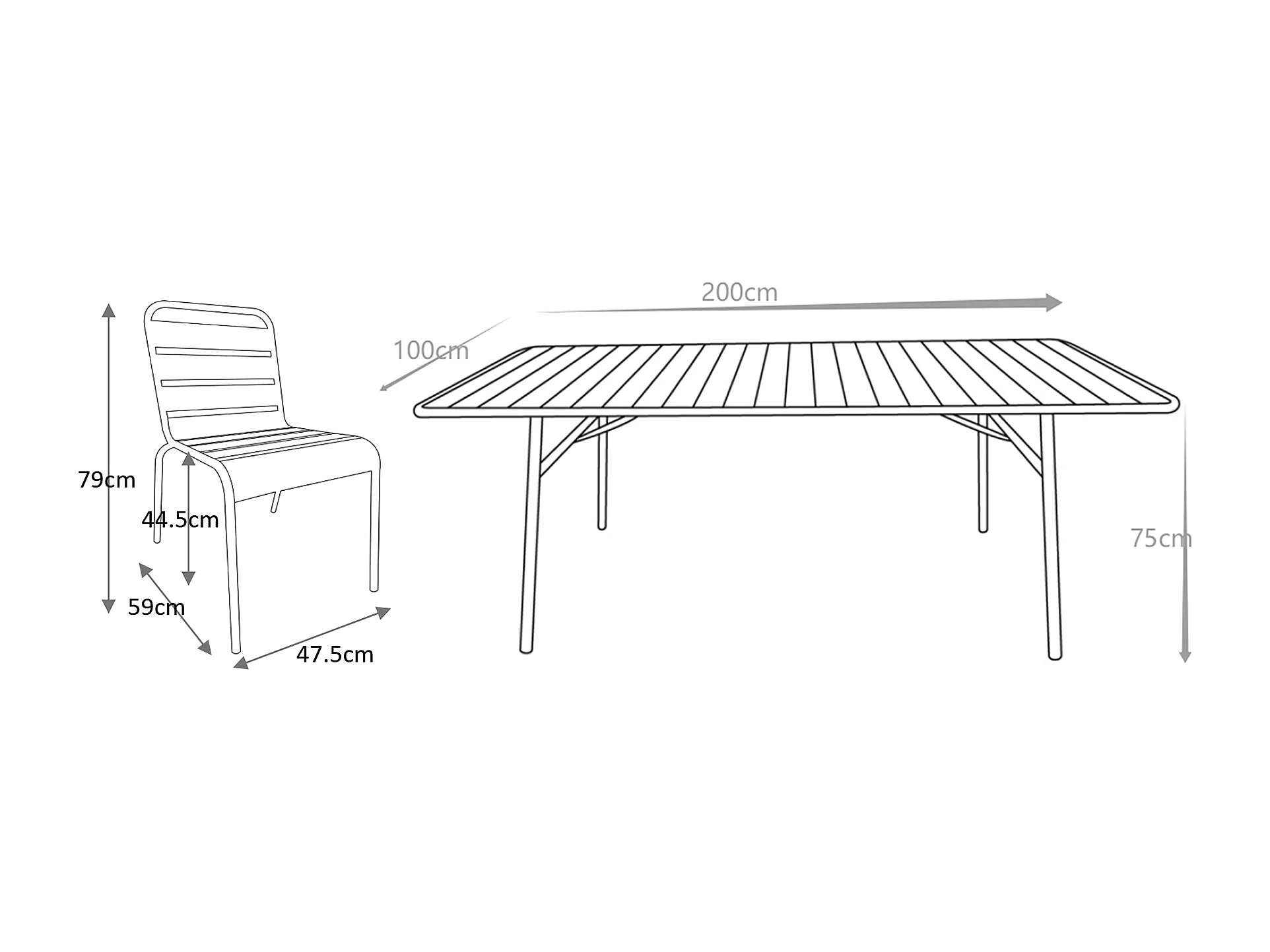 Salle à manger de jardin en métal - une table L.200 cm et 8 chaises empilables - Jaune moutarde - MIRMANDE de MYLIA