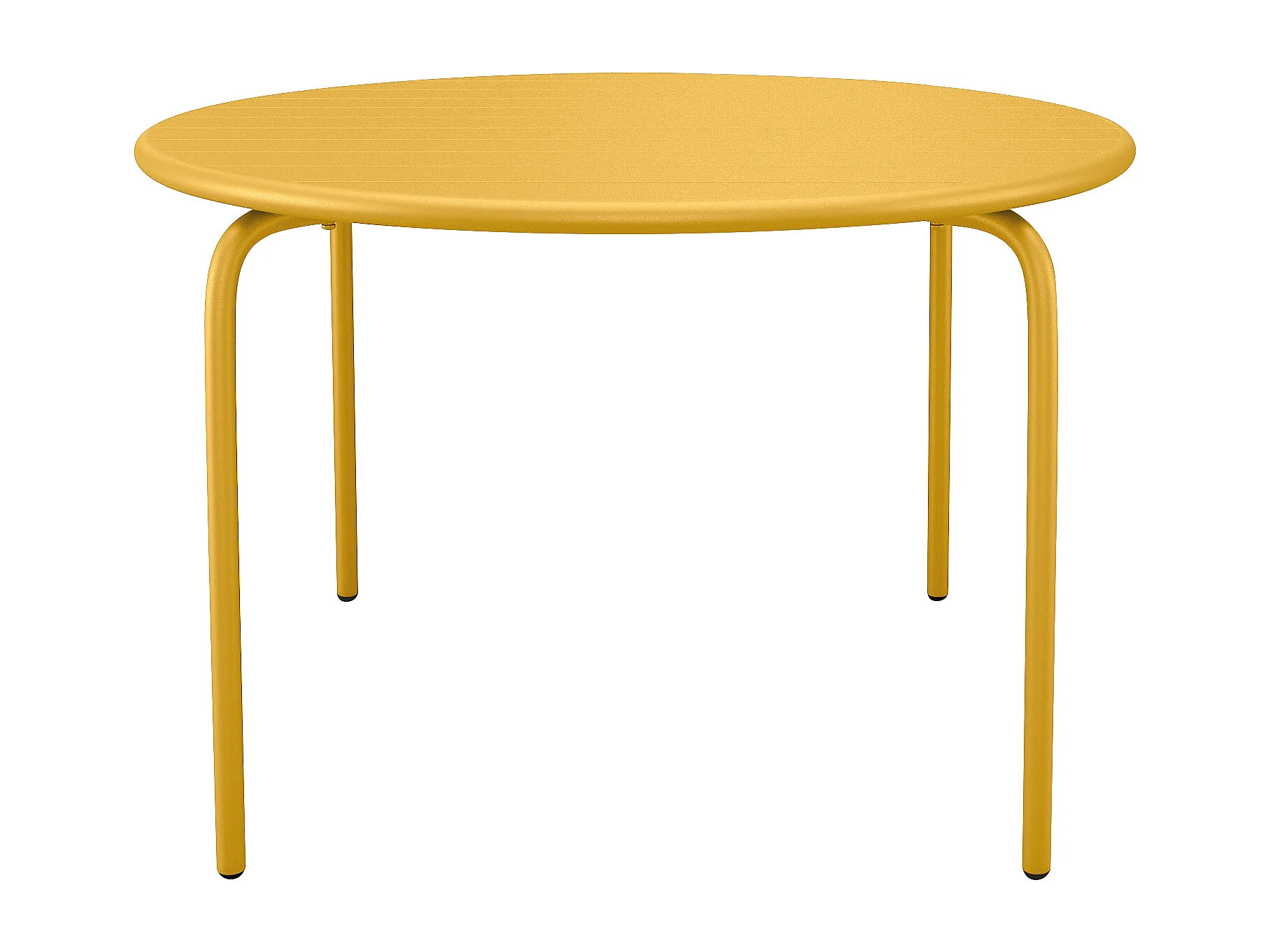Salle à manger de jardin en métal - une table ronde D.130cm et 6 fauteuils empilables - Jaune moutarde - MIRMANDE de MYLIA