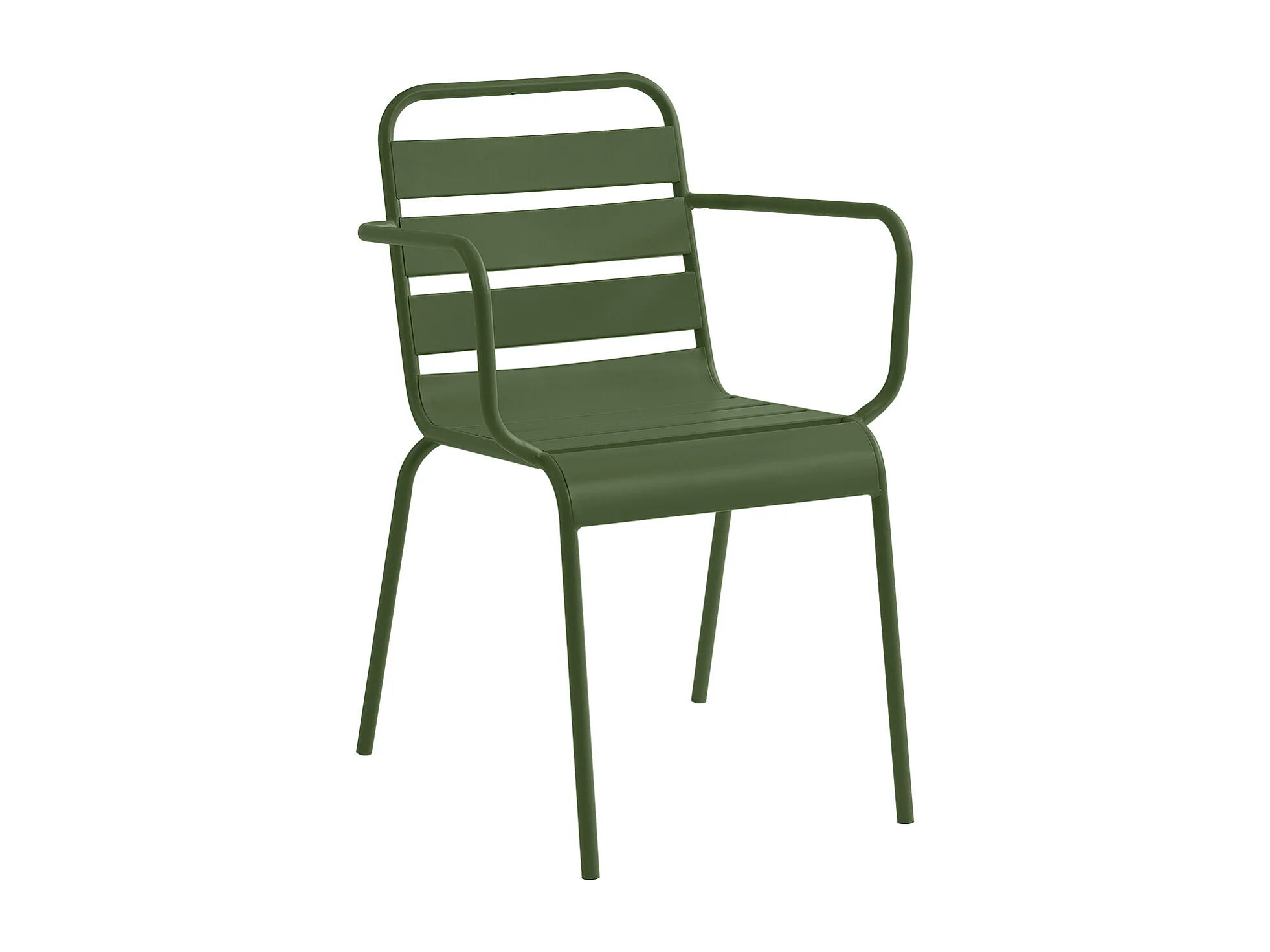 Salle à manger de jardin en métal - une table ronde D.130cm et 6 fauteuils empilables - Kaki - MIRMANDE de MYLIA