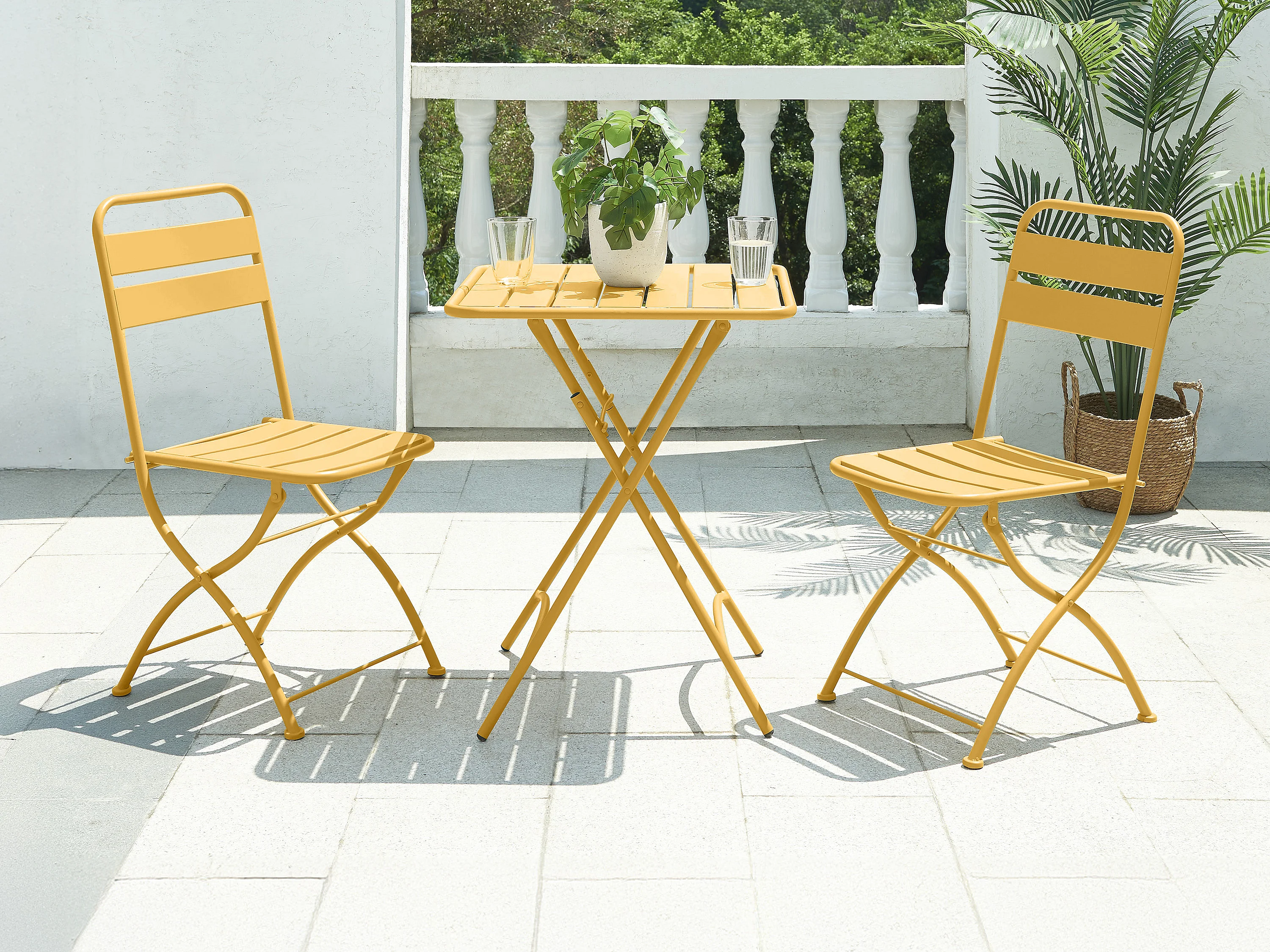 Salle à manger de jardin pliante en métal - une table L.60 cm et 2 chaises pliantes - Jaune moutarde - MIRMANDE de MYLIA