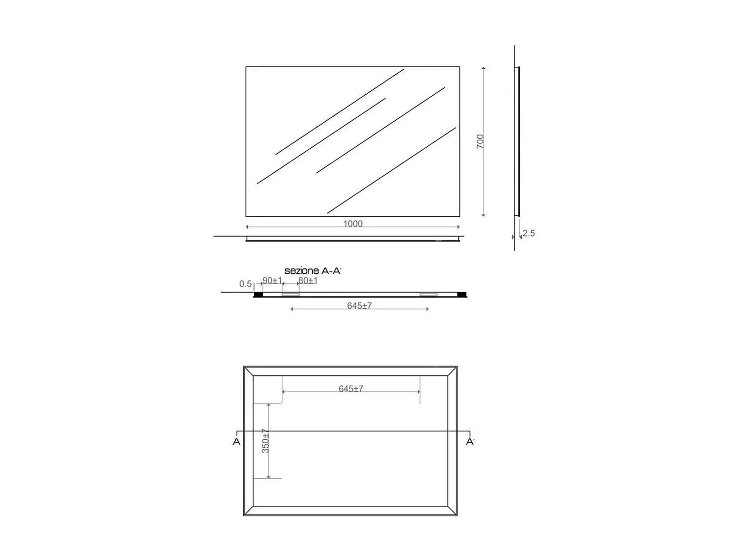 Miroir À Bords Polis Cm 100X70 Réversible