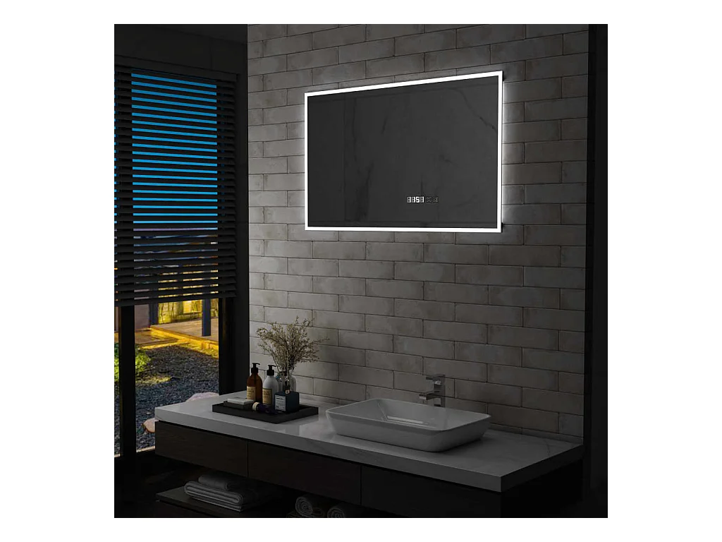 Miroir à LED et capteur tactile et affichage d'heure 100x60 cm FR62712