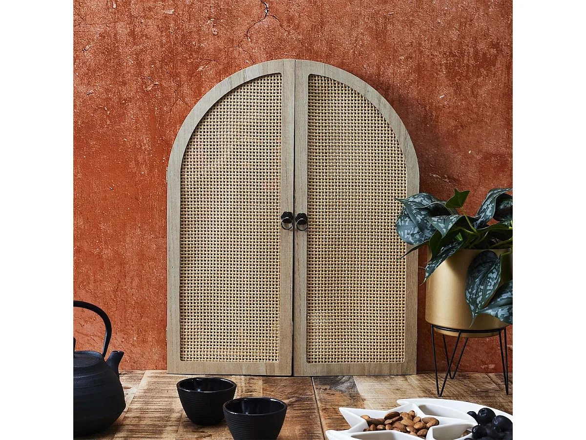 Miroir à volet effet bois et façades en rotin - MAYA