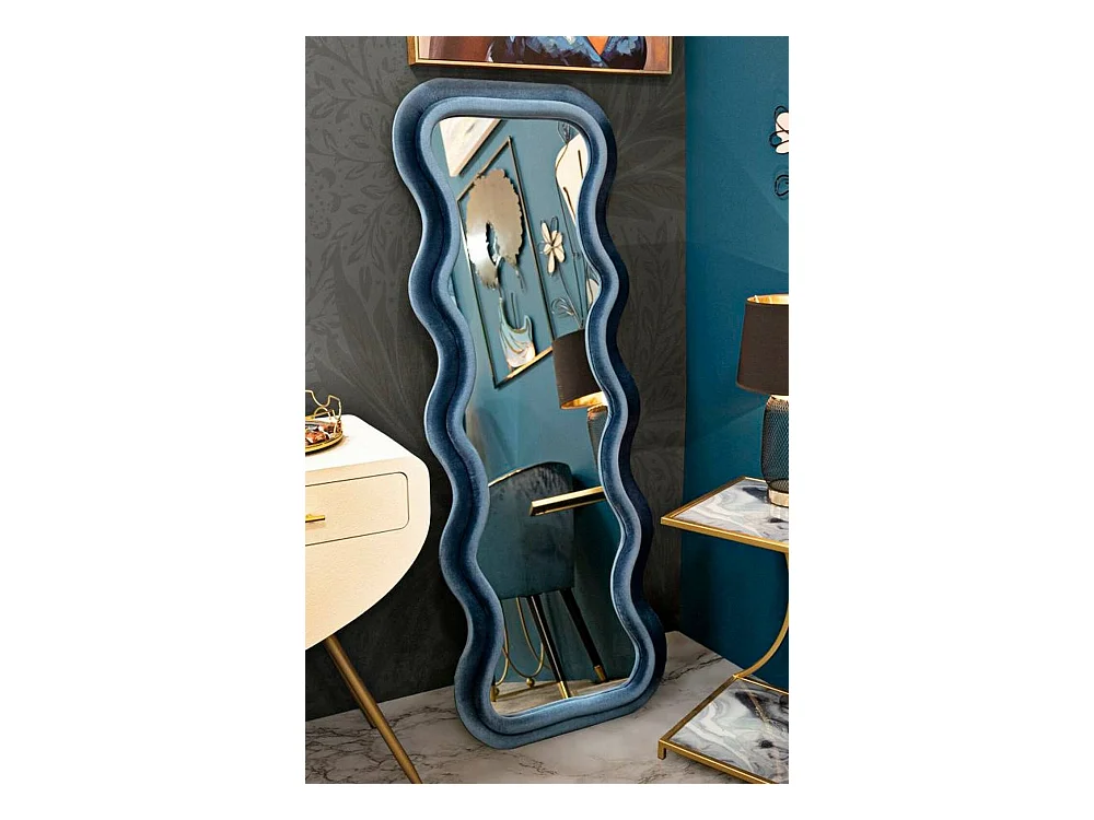 Miroir Allen, Verre miroité, Objet d'ameublement mural, Décoration avec miroir, 60x6 h160 cm, Bleu