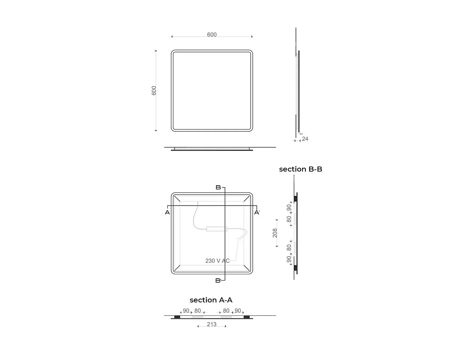 Miroir Angles Arrondis Éclairé Avec Led 60 X 60 Cm | Dallas