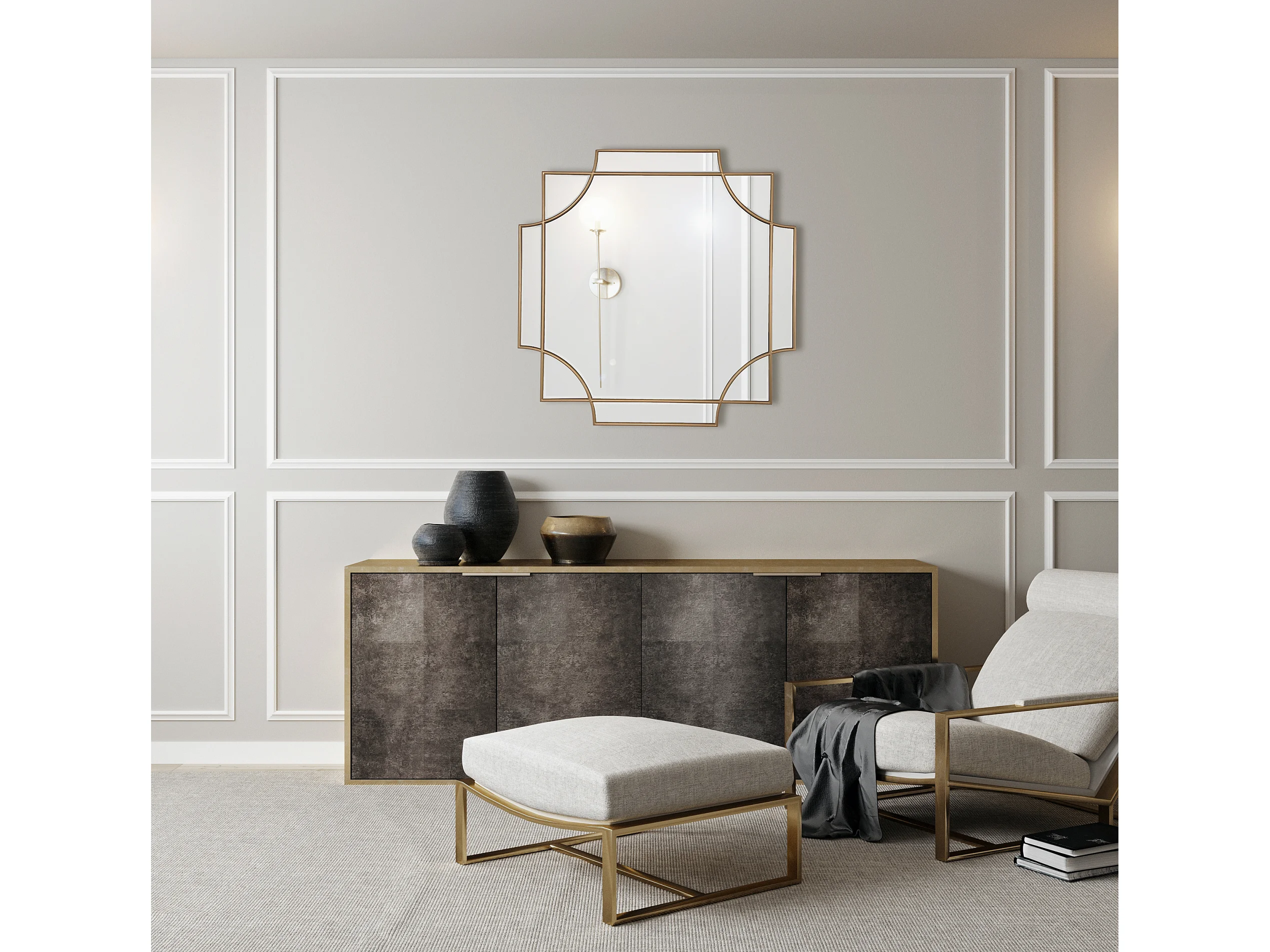 Miroir art déco doré cuivré 80x80cm