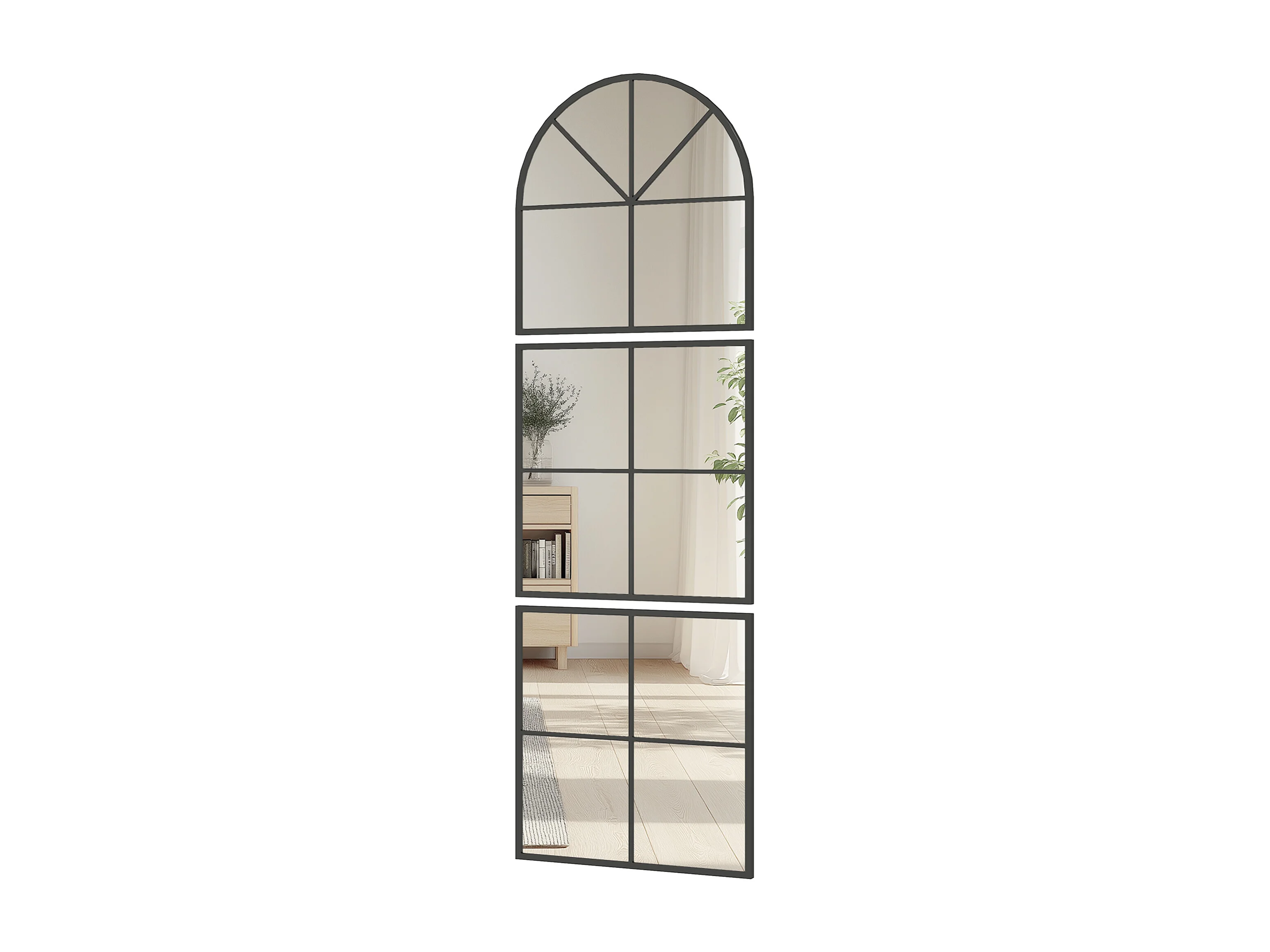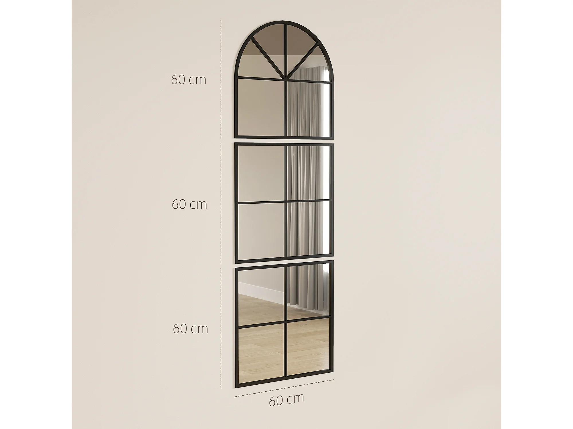 Miroir mural style verrière ensemble de 3 pièces métal noir verre