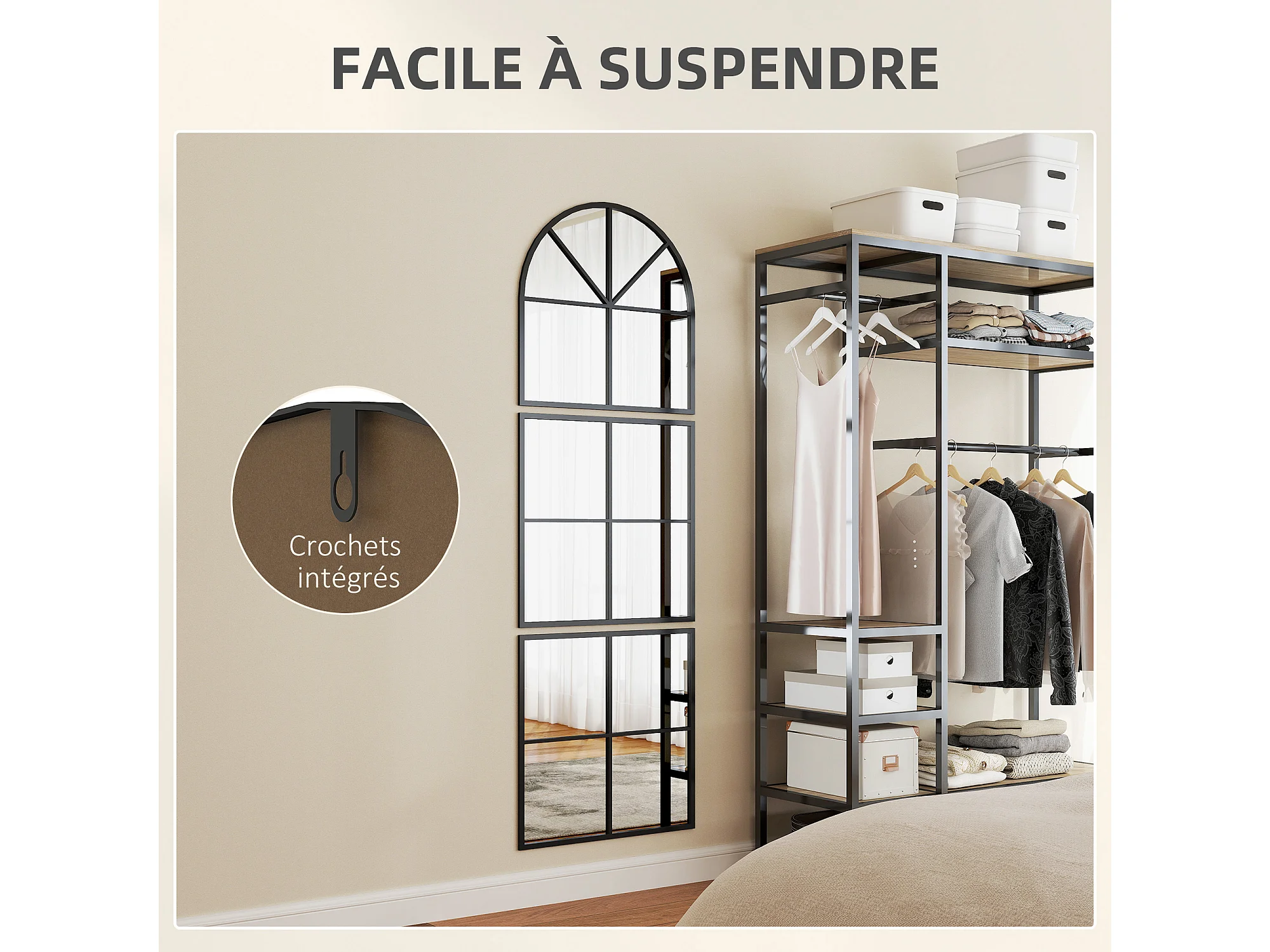 Grand miroir mural pleine longueur 40x160 cm style verrière métal noir