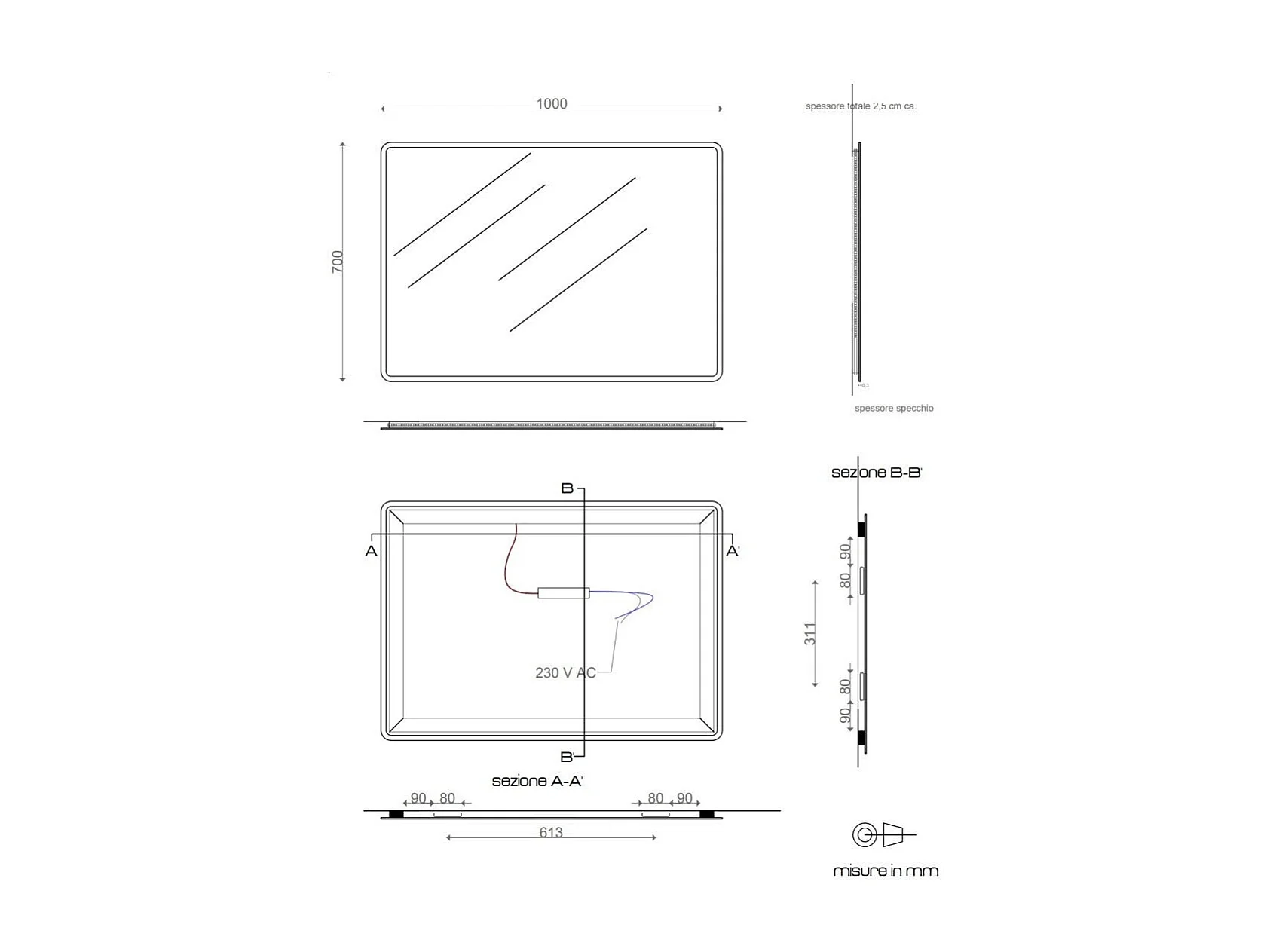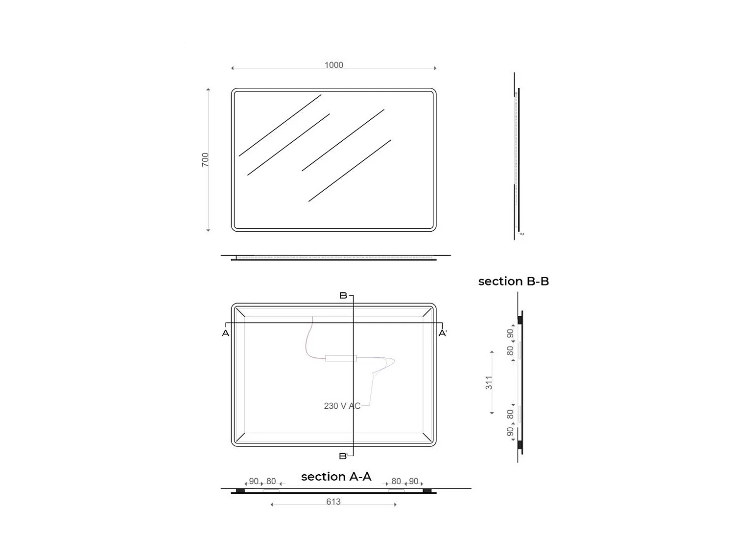 Miroir Avec Bords Sablés Et Éclairage A Led Intégré 100X70 Cm