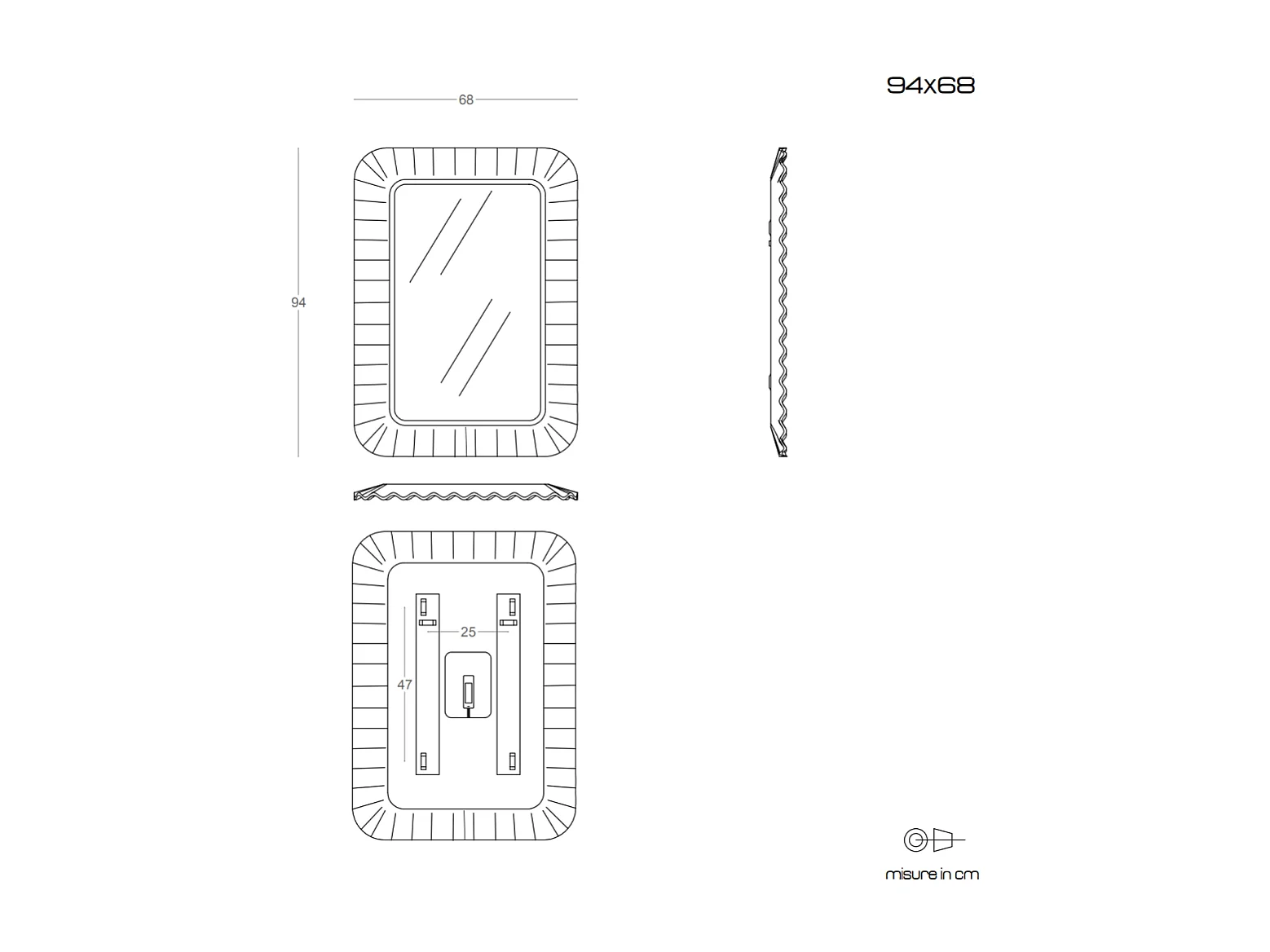 Miroir Avec Cadre En Verre Moulé Ondulé Blanc Et Éclairage À Led 94X68