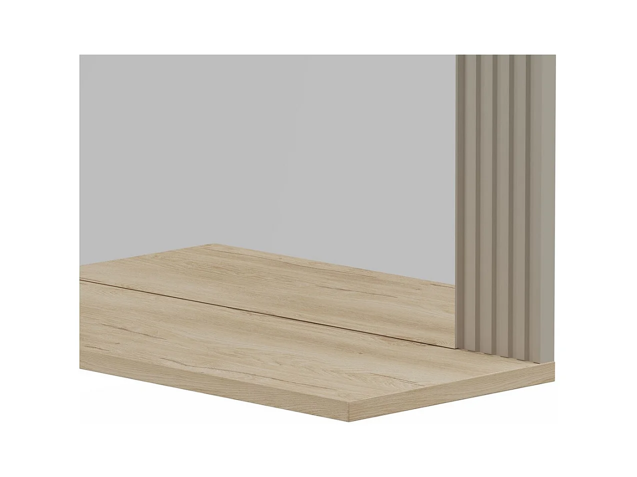 Meuble d'entrée - Miroir avec tablette en mélaminé coloris gris ciment. L - H - P : 90 - 62 - 20 cm
