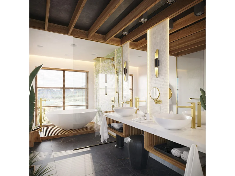 Miroir de rasage avec éclairage LED HANSGROHE AddStoris doré poli