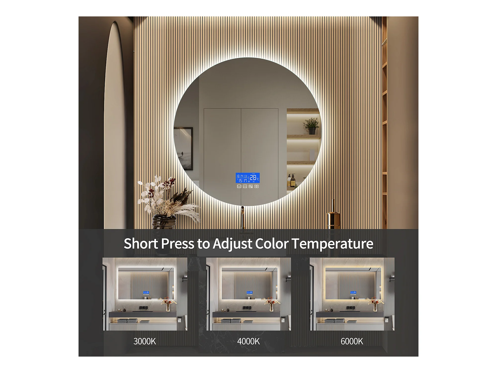 Miroir de Salle de Bain - 100*100 cm - avec LED - Fonction anti-buée - Affichage Temps/Température - Blanc