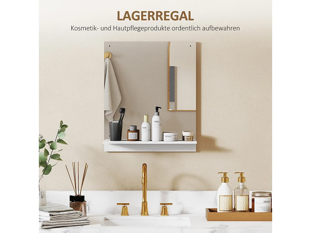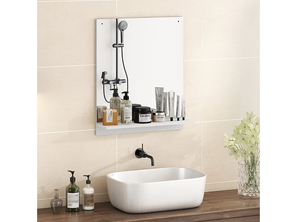 Miroir de salle de bain 50 x 60 cm miroir mural avec étagère miroir de salle de bain pour entrée couloir blanc