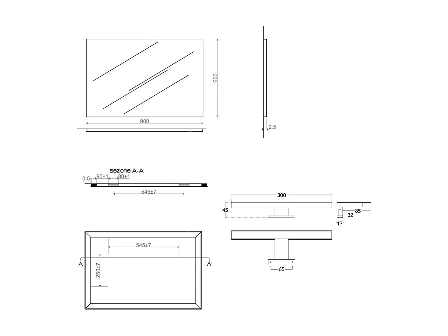 Miroir De Salle De Bains Réversible 80X60 Avec Lampe Chromée De 20Cm
