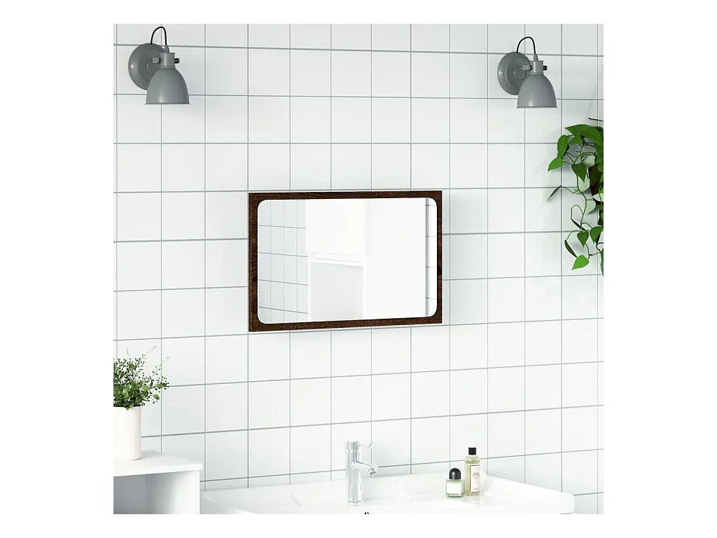 Miroir de salle de bain à LED chêne marron bois d'ingénierie